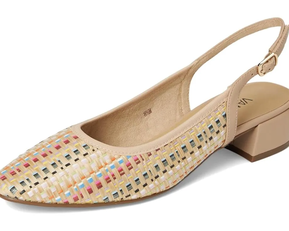 - Adjustable buckle strap closure in an almond toe silhouette.