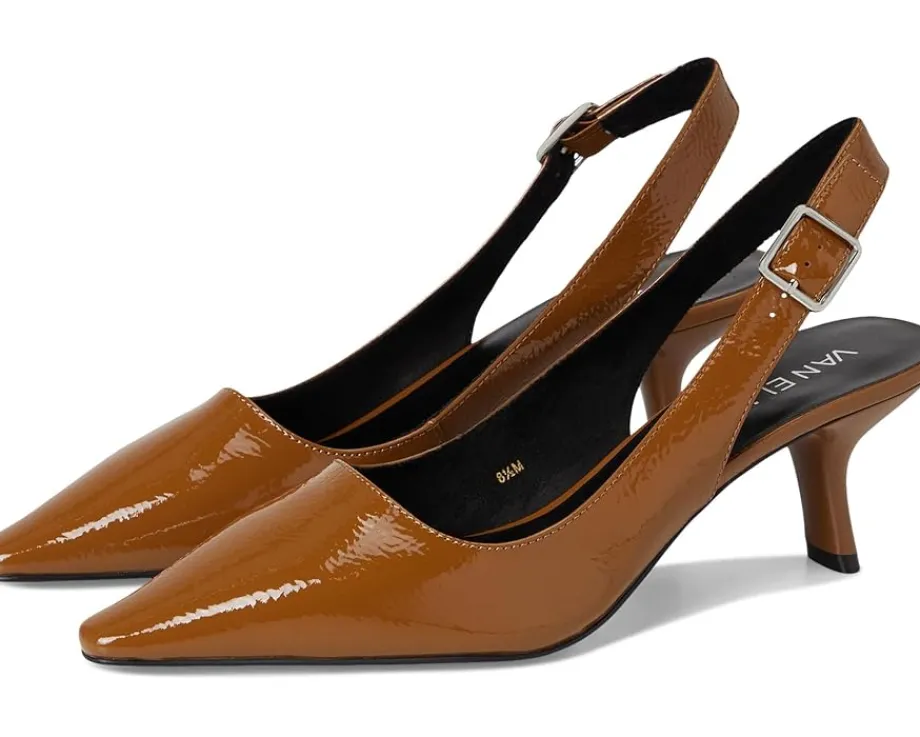 - The Vaneli® Patti Pumps are made with the finest materials and are made to be comfortable and fashionable! The slip-on style heels come with a leather upper, leather lining, and a cushioned rubber insole. The adjustable backstrap with buckle closure ensures a secure fit and the kitten heel adds height to your look.