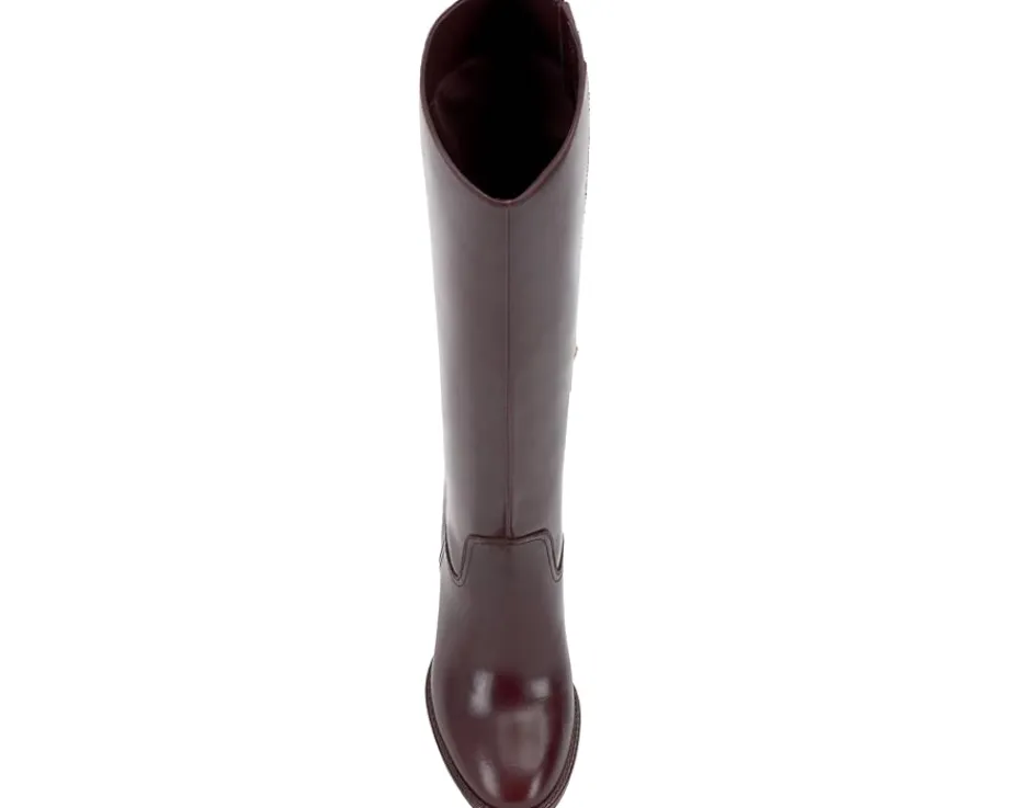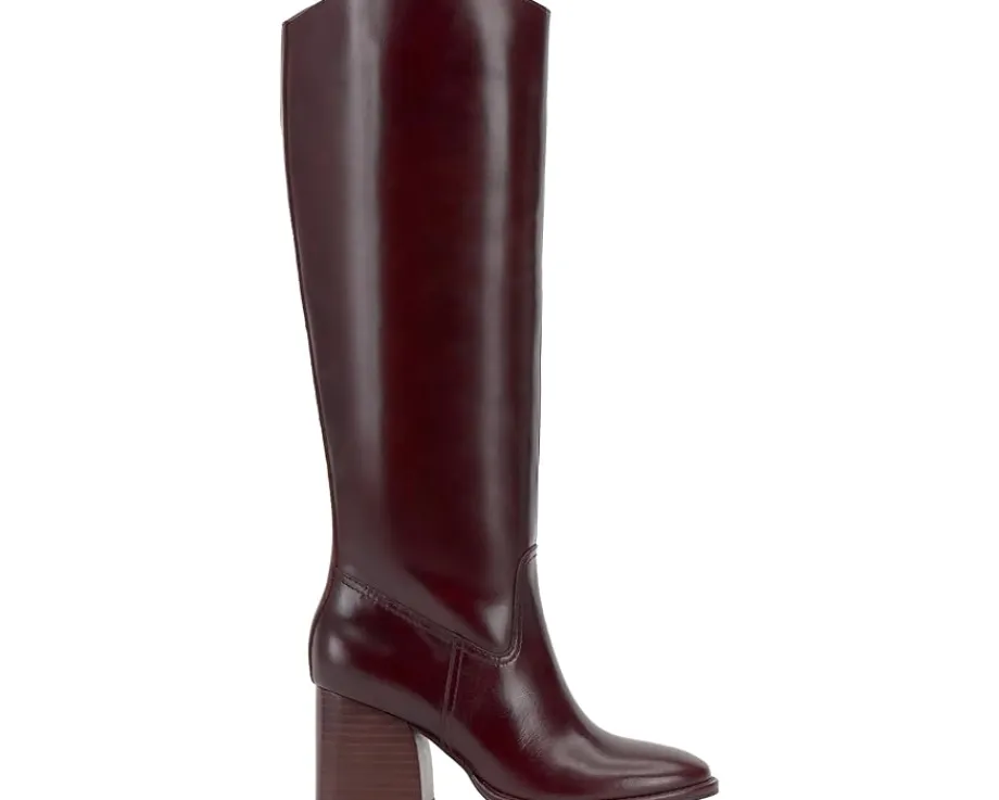 - The knee-high Vince Camuto® Leila tall shaft boot has a modern vintage vibe. With soft round toe and a stacked block heel, this sleek boot has zippered side closure and elastic goring on the shaft for improved fit. The footwear is fabric lined and finished on the exterior with a leather-covered welt and rubber outsole.