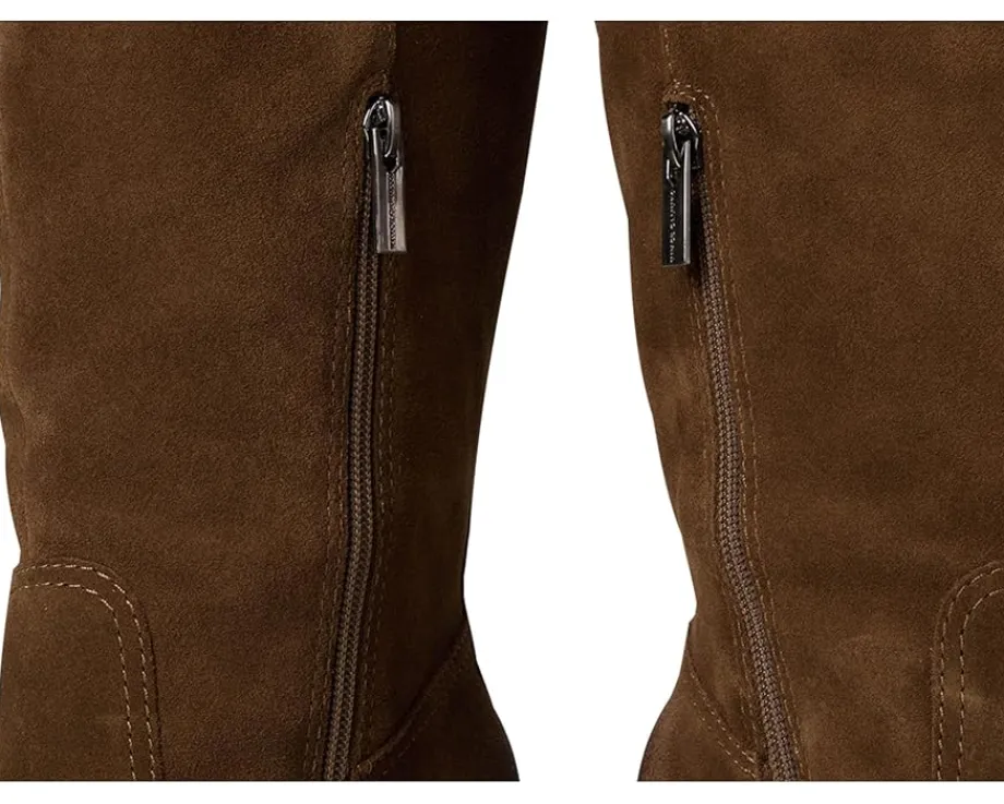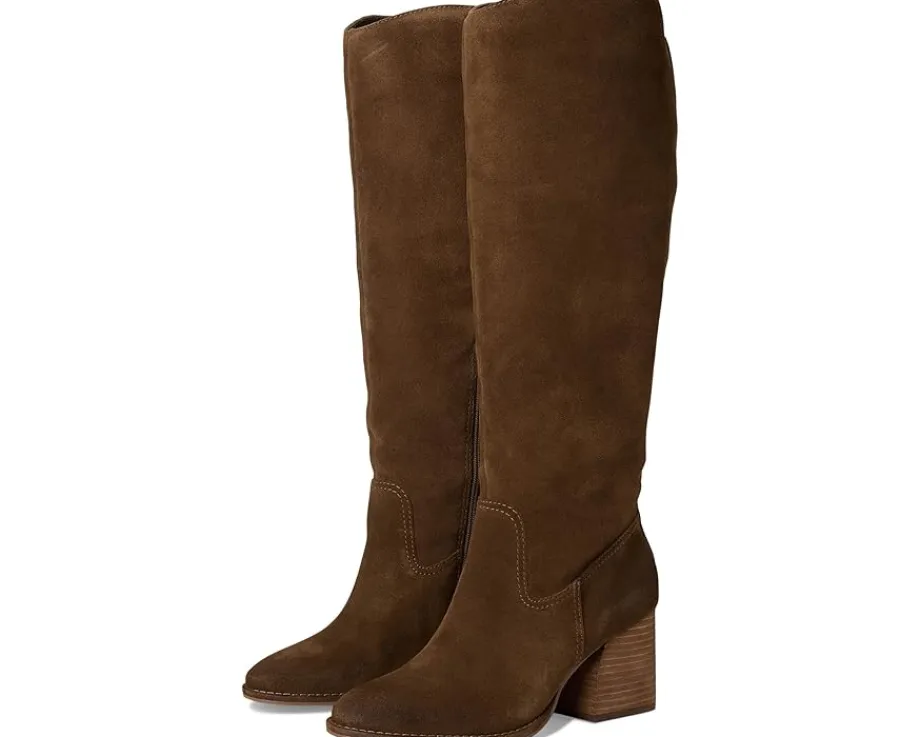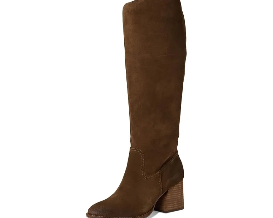 - The Vince Camuto® Leila – Wide Calf boots have a modern vintage vibe. With soft almond toes and stacked heels, These sleek boots also have a zippered interior closure on its high shaft with elasticized goring for improved fit and comfort. For the wide shaft version, the circumference has additional inches added. The boot is fabric-lined with a padded sock and is finished on the exterior with a leather-covered welt and rubber outsole.