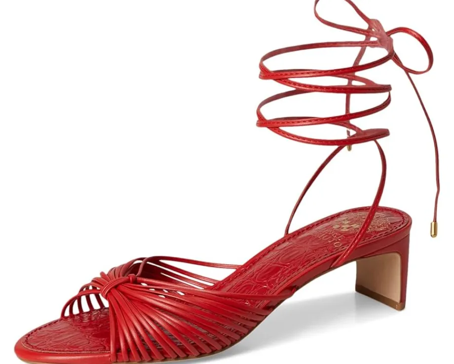 - The Vince Camuto® Lory Ankle Wrap Kitten Heel Sandals feature a strappy design that offers a stylish appeal, making them perfect to pair with your party outfits and dresses. These heeled sandals are made of a man-made upper, insole, lining, and outsole. The strappy tie closure ensures a perfect fit.
