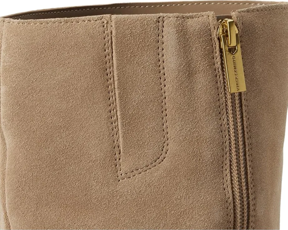 - The Vince Camuto® Pavla Knee High Boots exude effortless sophistication. Crafted from Verona suede, these heeled boots showcase a refined silhouette with a pointed toe shape and a subtly structured shaft. Their low stacked block heels offer both style and comfort, and the full-length zippered side closure makes for easy entry. They are made of a polyester insole and fabric lining. Whether paired with tailored trousers or a chic dress, these knee-high boots add a polished touch to any outfit.