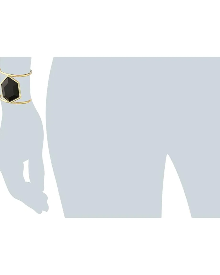 - Gold tone bracelet with faceted center stone.