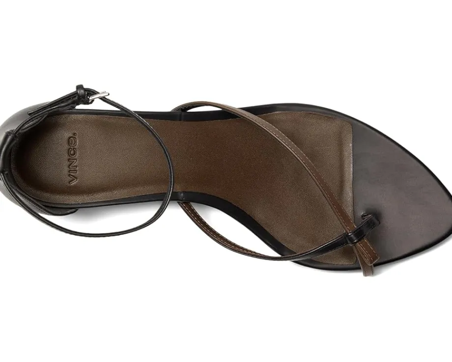 - Styled with a kitten heel for a touch of height, the pared-back silhouette of the Vince® Siri Thong Sandals allow their supple leather to shine. This almond toe footwear is designed with an adjustable buckle on the ankle strap.