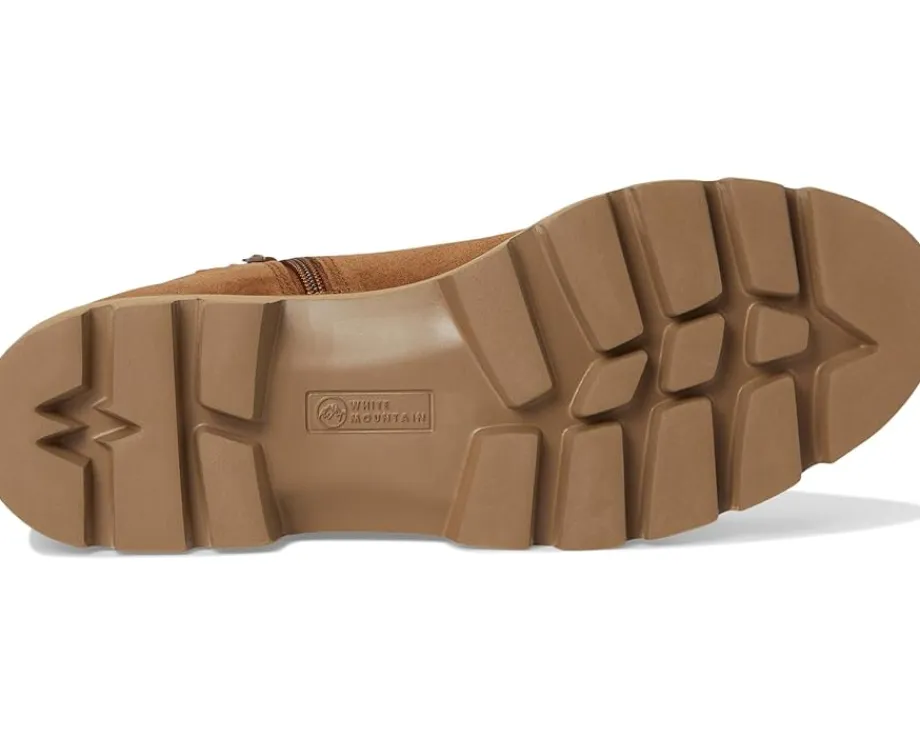 - Create the perfect fashion statement wearing White Mountain® Glassie Boots, a versatile wardrobe staple for everyday use. The classic silhouette bridges the gap between formal and casual wear. The pull-on style, ankle-high boots are crafted with a leather uppper with elastic back gores, fabric lining, and foam insole. Plus, the block heel detail elevates the look and the ankle pull tab allows donning & doffing. The synthetic rubber lug outsole and easy slip-on design provide both comfort and ease. These boots will add a touch of refined charm to any outfit.