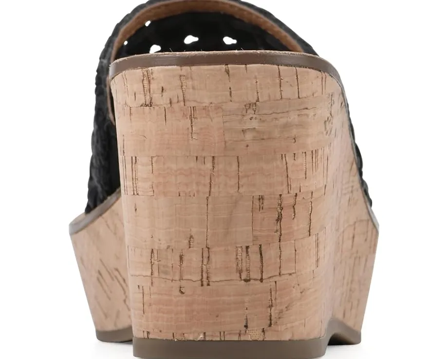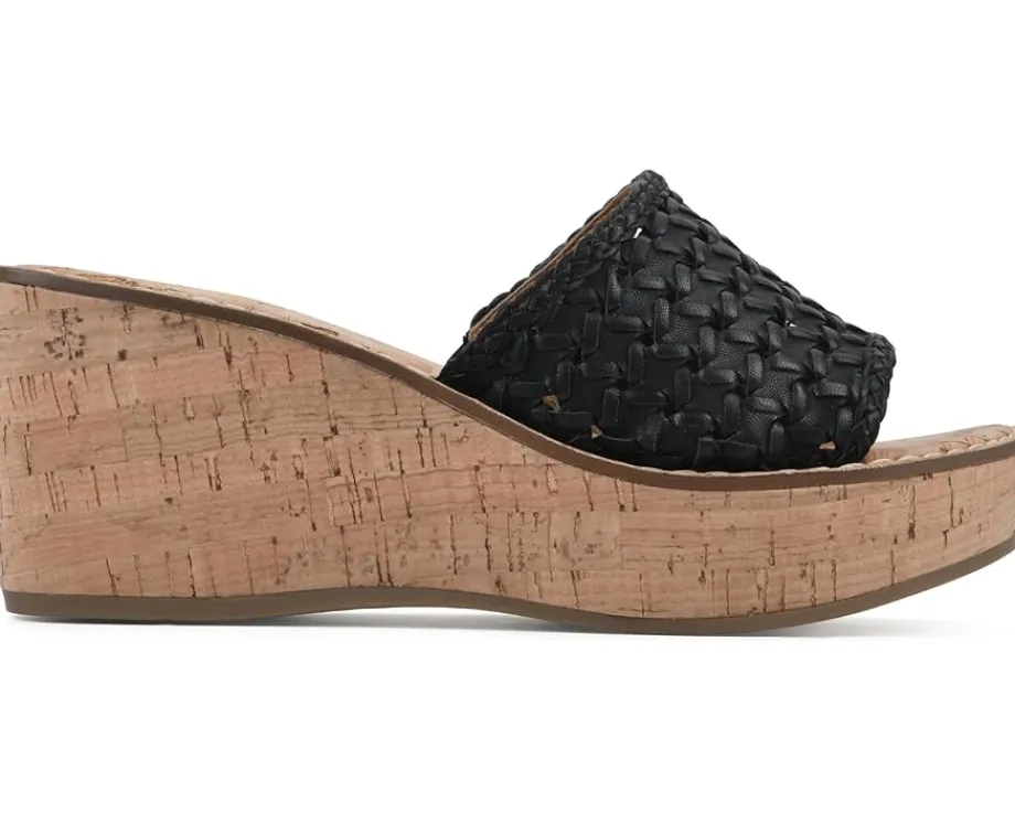- Own the street wearing the stylish White Mountain® Charges Woven. Crafted from PU upper, and faux leather insole, this pair of slip-on sandals features woven upper band design, lightly cushioned insole, cork wedge heel, round toe design, and brand detailing on the footbed.