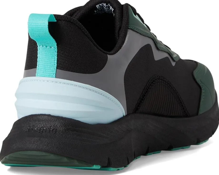 - Make a statement with every step wearing the Alegria® Exhault. Crafted from leather upper, knit lining and leather insole, this pair of tech-driven athletic style shoes features round toe, adjustable laces, built-in arch support and protective mudguard inside and heel pull tab. It comes with a removable contoured footbed made of memory foam and cork for comfort.