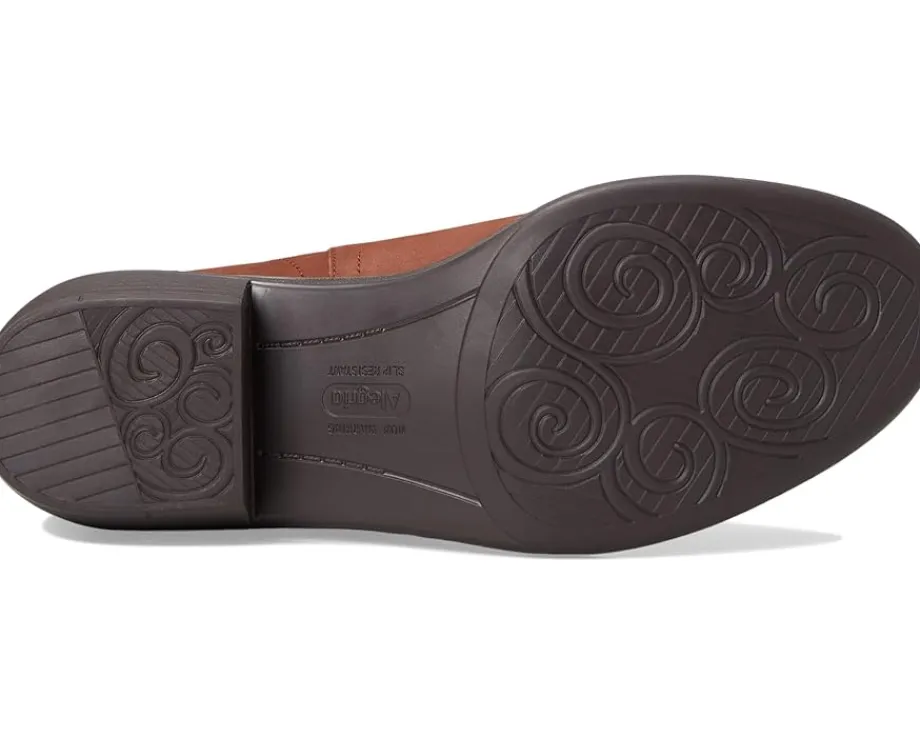 - Experience unmatched comfort wearing the Alegria® Merle boots. These booties offer timeless sophistication with the ease and comfort of a slip-on design. With a leather upper and double elasticized gores for easy on-and-off, just slip-on and go. Feel supported from day to night with the removable micro suede Signature Arch™ footbed. Featuring round toe design, pull tab, and low-stacked heel for an elevated look.