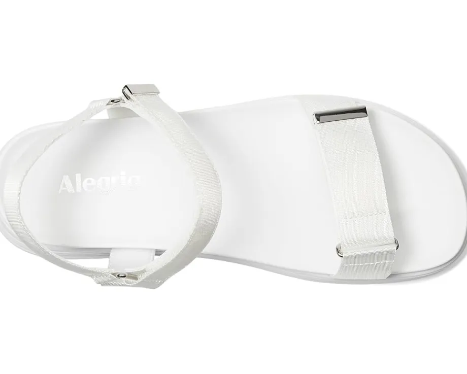 - Alegria® expands its water-friendly women’s sandal collection to include the Allyson – designed to combine function, comfort, and style. This sandal features a built-in arch support to ensure lasting comfort and alleviate pressure on the ball and heel of the foot during extended wear. The adjustable front and ankle straps provide a customizable fit, allowing for secure and easy adjustments. Adorned with a chic metallic tab detail, these sandals are fashionable and casual, while still maintaining its sporty flair. The lightweight, non-flexing polyurethane outsole ensures stability and durability, perfect for long walking days while out and about and traveling. With its dual-density midsole and outsole combination, these sandals offer maximum support and comfort, making them ideal for all-day wear. Embrace feminine fashion without compromising performance with our stylish and practical water-friendly platform sandals.