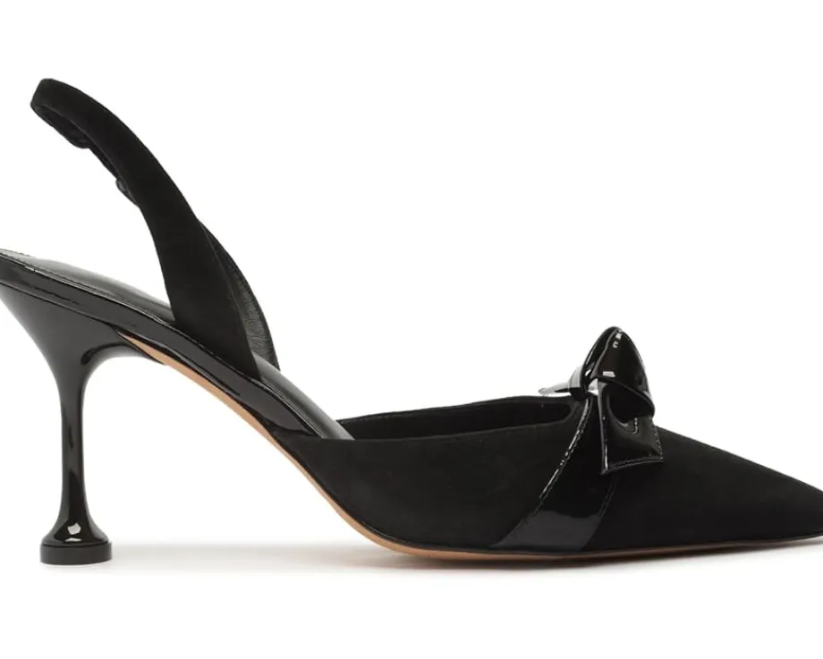 - Make a gorgeous statment by donning the sleek Alexandre Birman™ Clarita Slingback Stiletto Flare 85 heels adorned with a beautiful bow accent on the vamp and yet unique flared heels.