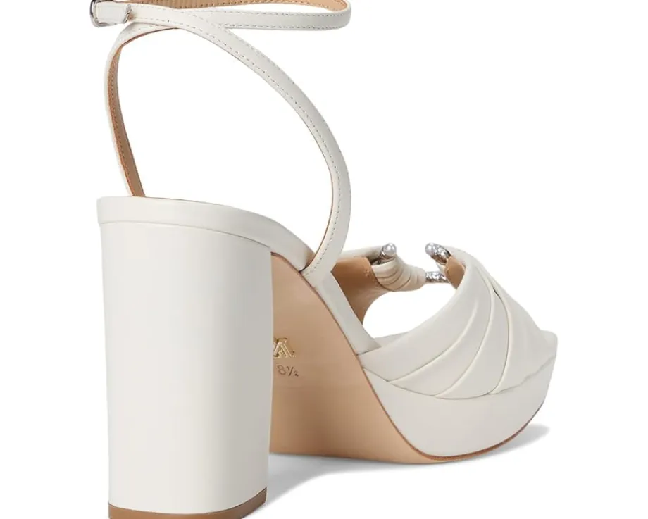 - Badgley Mischka® Veda is the ultimate statement sandal for those who love to shine. Crafted with a luxe leather upper, lining, insole, and outsole, this platform sandal exudes sophistication from every angle. The standout ruched upper adds an eye-catching touch of texture, balancing elegance with a playful edge. Designed with a sturdy block heel, it provides both lift and stability, making it perfect for long nights on the dance floor or elevated daytime looks. The adjustable ankle buckle strap closure ensures a secure fit, while the platform construction gives you height without compromising on comfort.