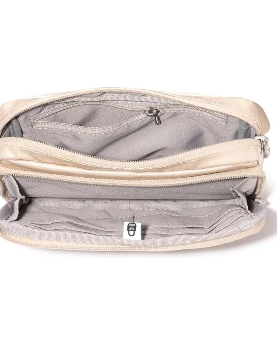 - Unveiling the Baggallini® Modern Belt Bag Sling – your chic companion for journeys in style. Crafted for the minimalist explorer, this bag ensures effortless organization with two zippered compartments. Experience peace of mind with RFID protection and six credit card slots. The adjustable waist strap and quick-release buckle offer convenience on-the-go, from trails to town.