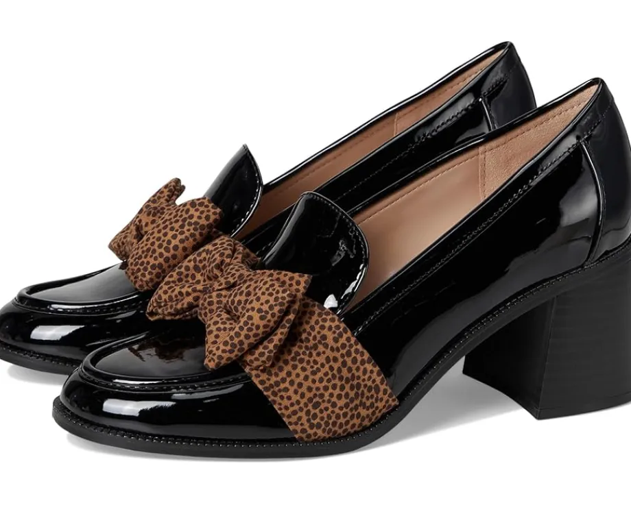 - Designed in a loafer silhouette with sculpted high-block heel, the Bandolino® Korrar ensures a standout appeal. The slip-on footwear features polyurethane upper with bow accentuation and almond toe silhouette.