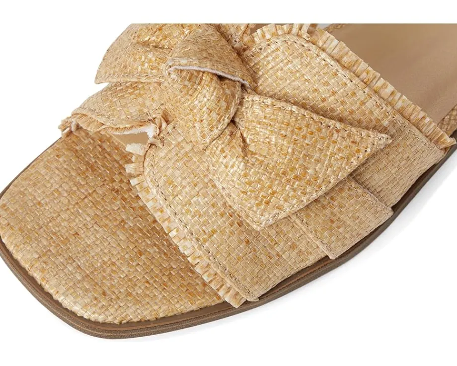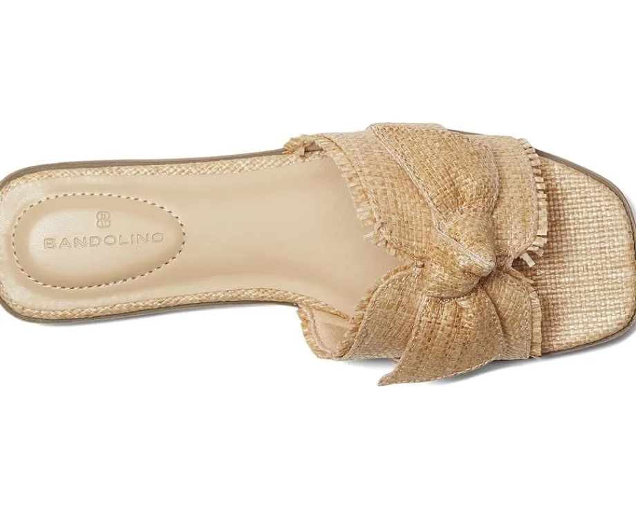 - The Bandolino® Vallen casual flats are your go-to style essential, blending modern flair with effortless wear. Crafted with a sleek PU upper and accented by an elegant bow detail, these sandals bring a feminine twist to any look. The open toe and contemporary square toe design elevate your everyday outfits with a trendy edge. Featuring a slip-on silhouette for easy wear, a soft polyester lining, and cushioned foam insole for all-day comfort, every step feels like a dream. The durable synthetic rubber outsole offers grip and flexibility wherever you go.