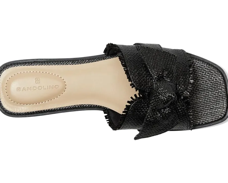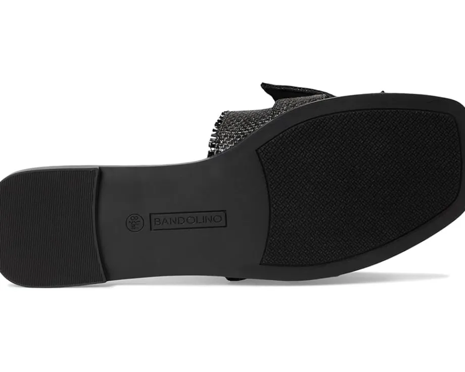 - The Bandolino® Vallen casual flats are your go-to style essential, blending modern flair with effortless wear. Crafted with a sleek PU upper and accented by an elegant bow detail, these sandals bring a feminine twist to any look. The open toe and contemporary square toe design elevate your everyday outfits with a trendy edge. Featuring a slip-on silhouette for easy wear, a soft polyester lining, and cushioned foam insole for all-day comfort, every step feels like a dream. The durable synthetic rubber outsole offers grip and flexibility wherever you go.
