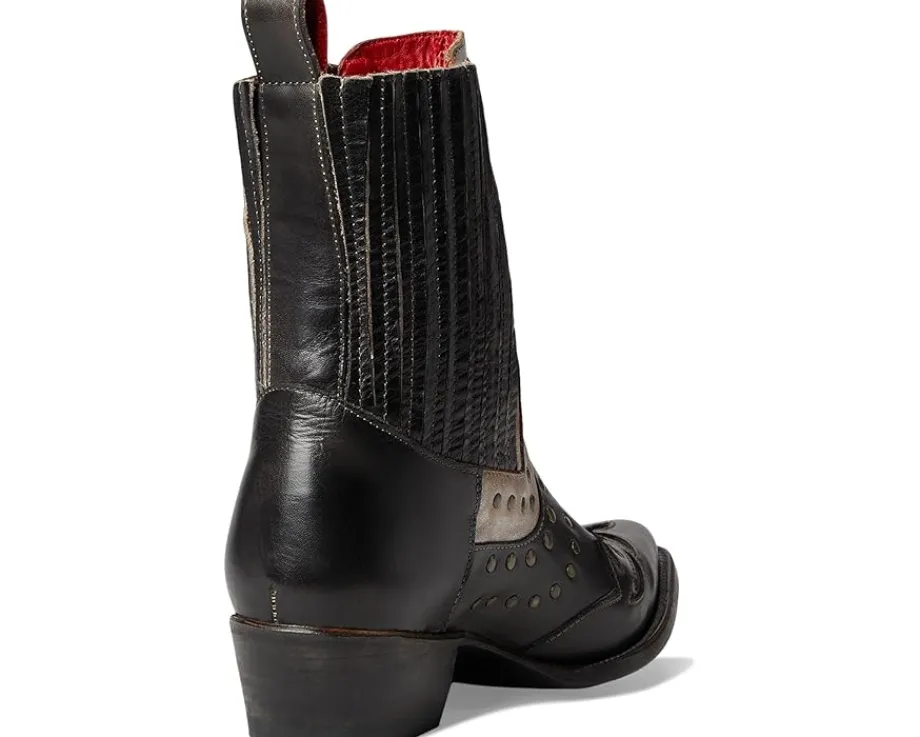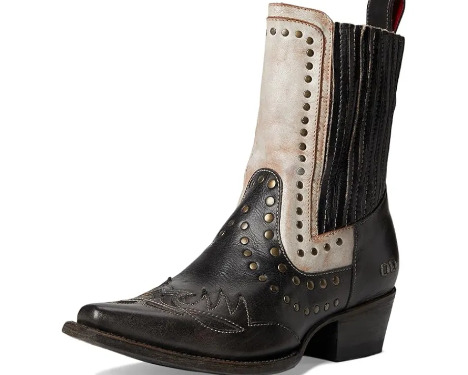 - Bed Stu® Raise Western Boots are a playful twist on a classic Western-inspired boot. With its vibrant color combinations, studded accents, and signature Western stitching, this short boot is all about making a statement. The snip toe design adds a touch of traditional flair, while the hidden stretch goring ensures easy on-and-off for effortless everyday wear – combining modern style and functionality with tried-and-true Western construction. Crafted from vegetable-tanned leather upper, breathable leather lining, and leather insole. Goodyear® welt construction provides excellent durability and flexibility.