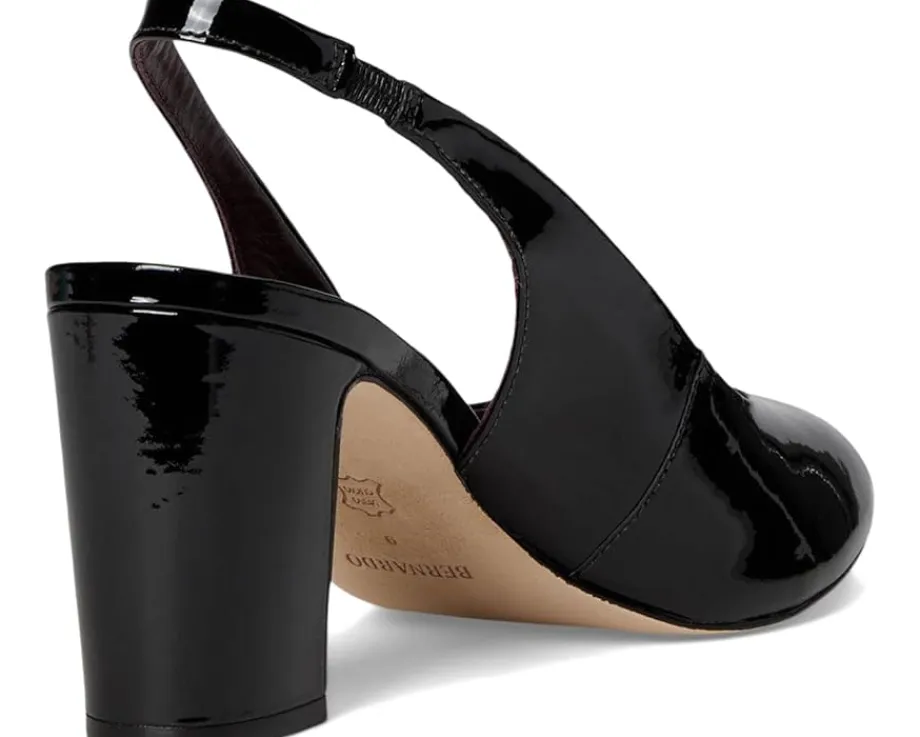 - Crafted for the city beat: Bernardo® Adell. From meetings to soirées, these slingback peep-toe heels are your go-to for everyday elegance. Crafted with a luxe leather upper, lining, insole, and outsole, Adell delivers all-day comfort without compromising on polish. The soft patent leather or supple suede adds a touch of texture, while the easy pull-on design and secure slingback strap keep things effortlessly refined. A modest block heel elevates your stride, perfect for power moves at the office and graceful glides at dinner.