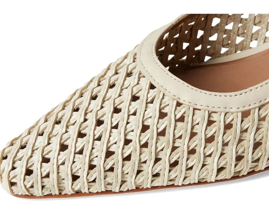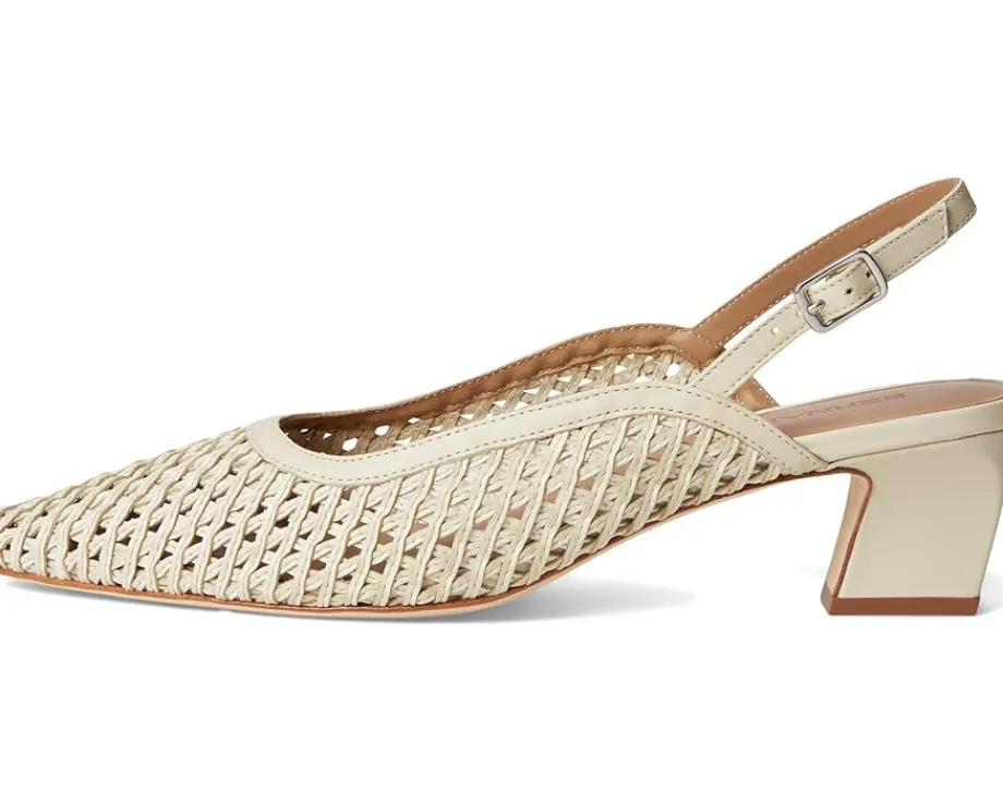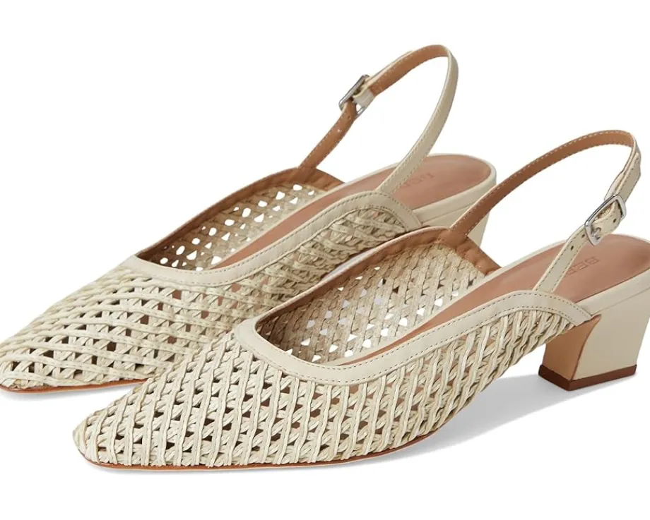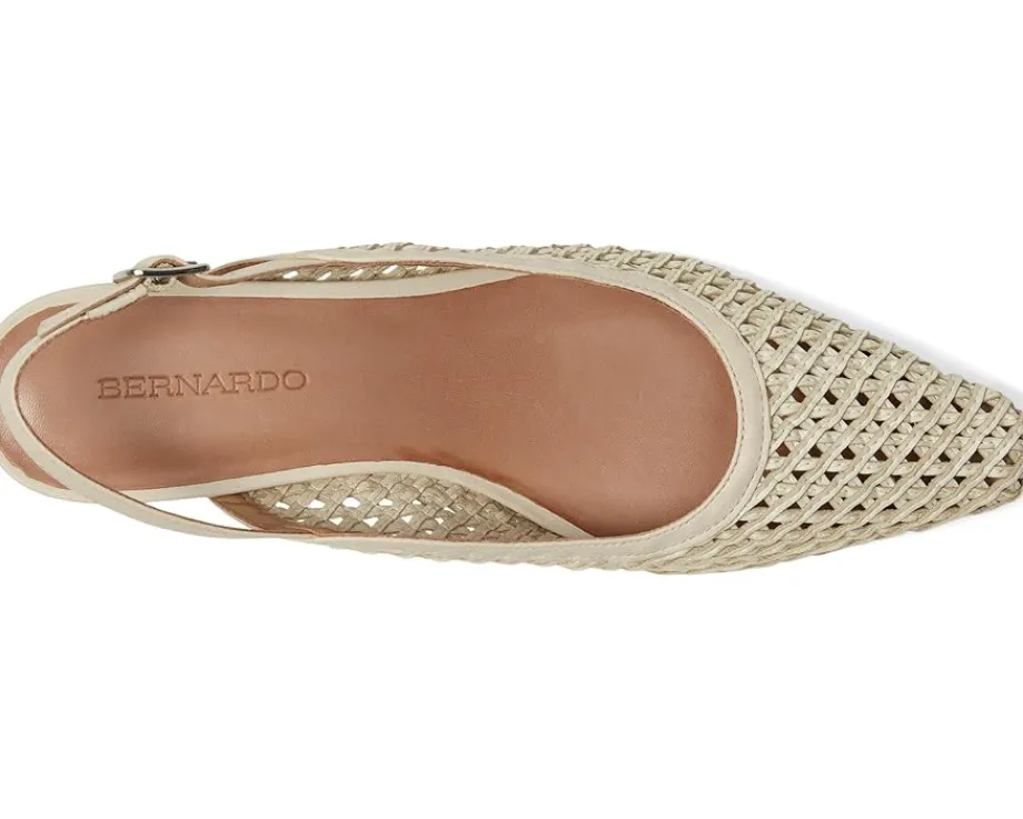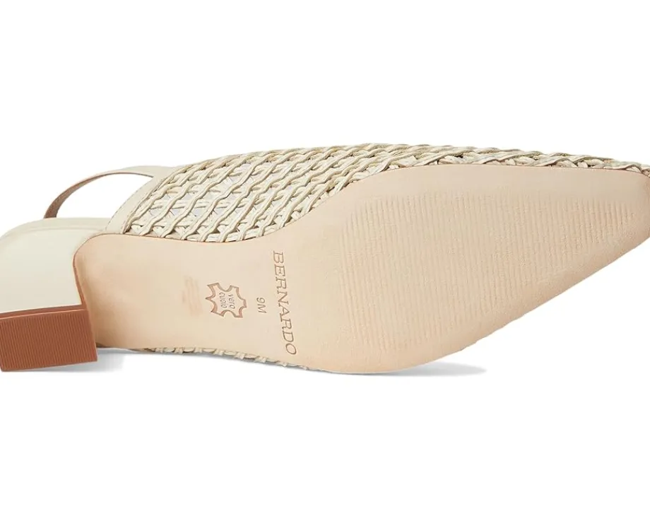 - Expand your horizons. This inventive Bernardo® Athena slingback takes a familiar design to a new place, uniting a handcrafted woven upper with modern curved lines. Adjustable buckle straps and block heels ensure a comfortable journey, no matter where you’re going.
