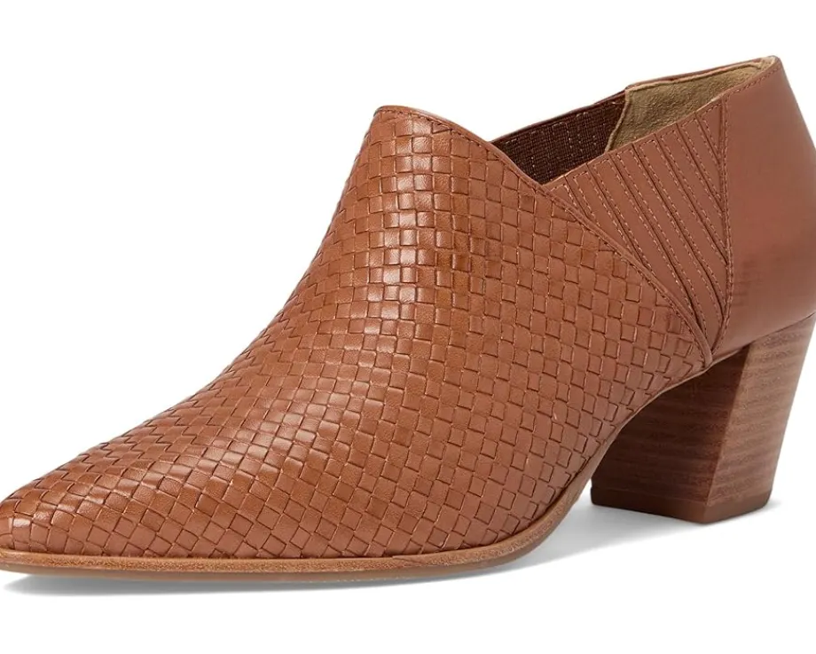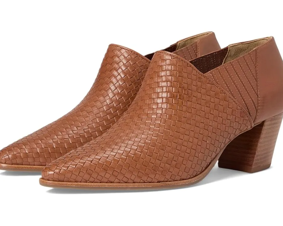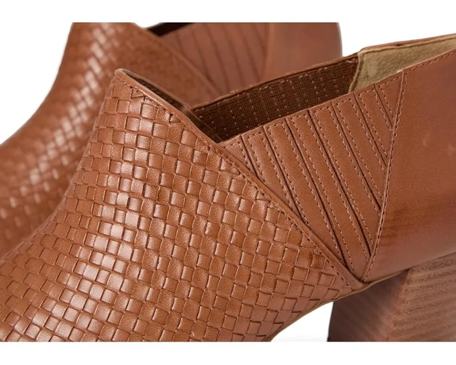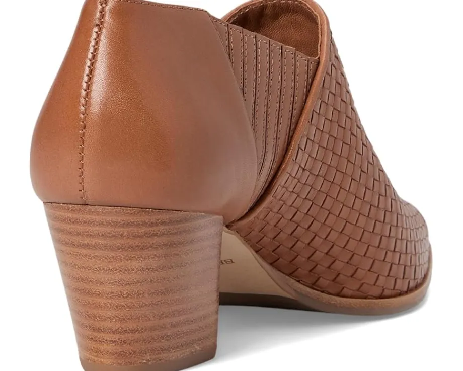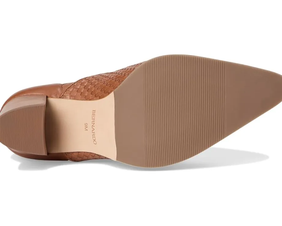 - Question everything? This Bernardo® Famous low-ankle bootie challenges the notion that comfort and elegance are contradictory, thanks to its handcrafted woven leather upper, block heel, and elasticized side panel for wearable ease.