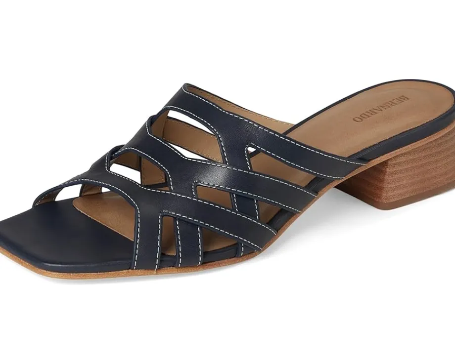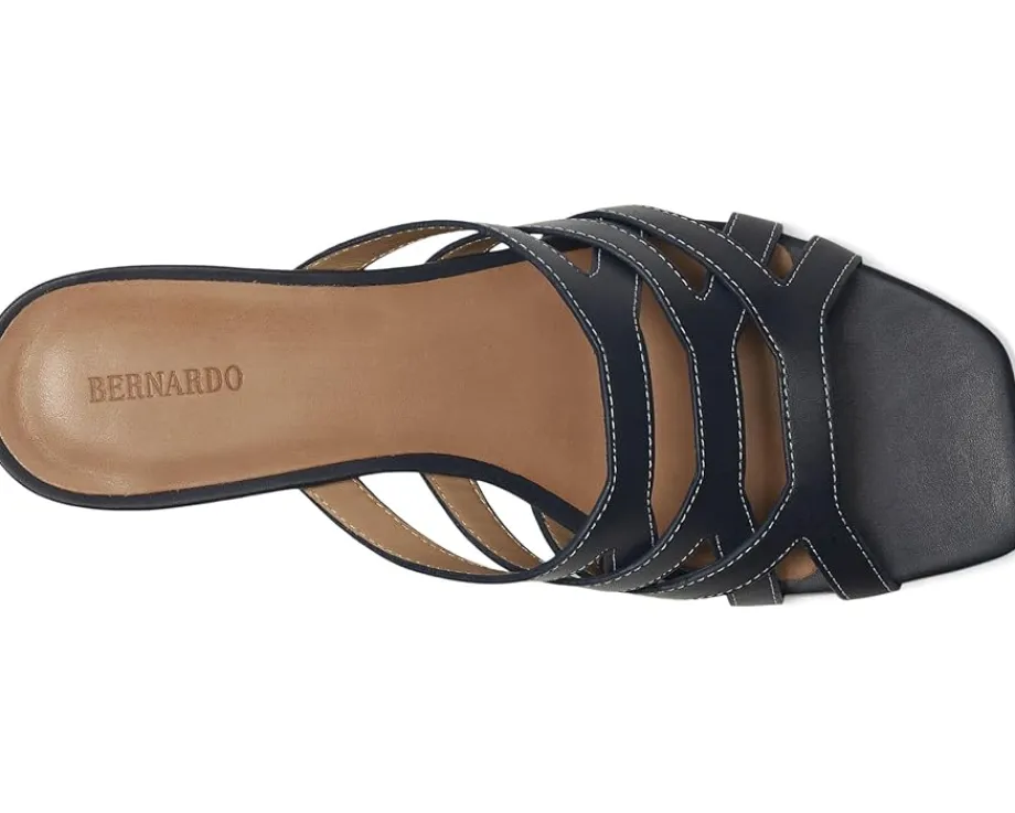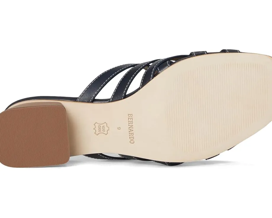 - Create space. The Bernardo® Jacin slip-on heeled sandal cultivates ease with its simply elegant leather upper and work-play stacked heel, which invite you to both embrace the everyday and explore new horizons.