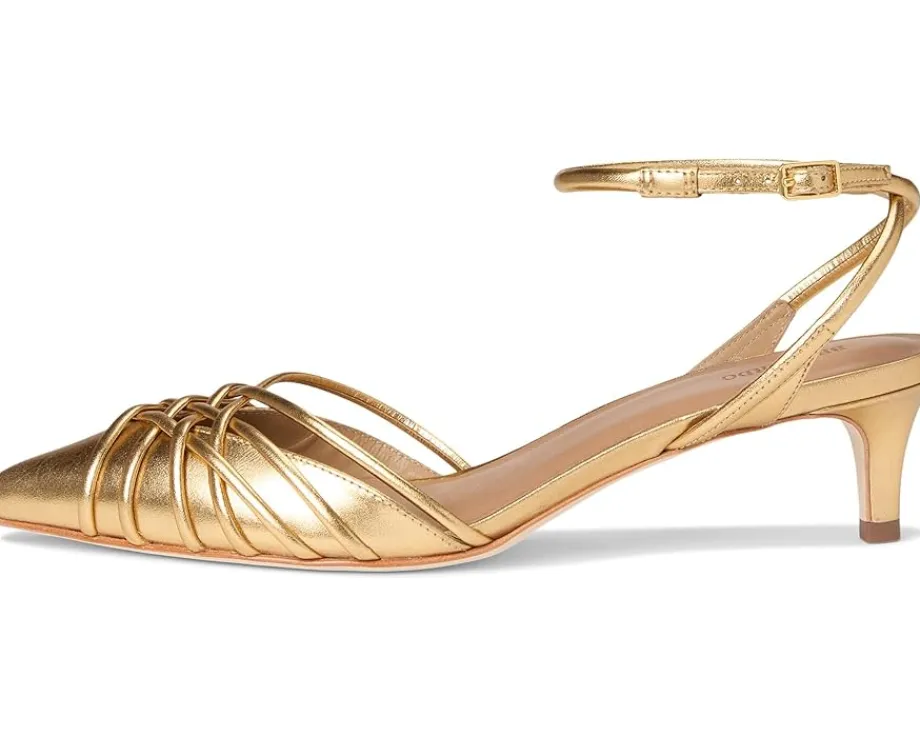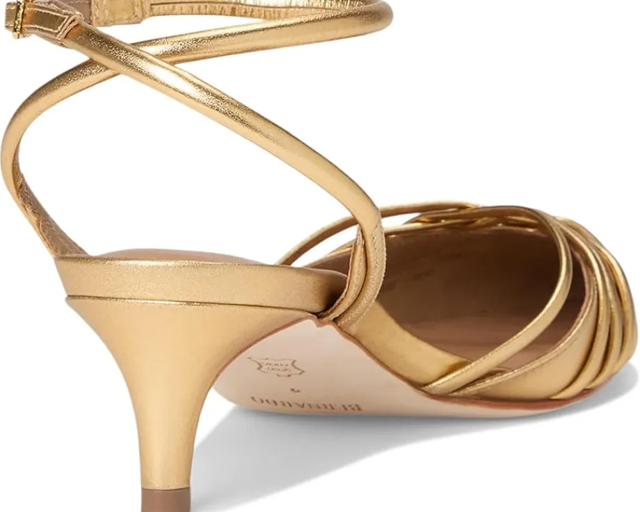- Flattering lines, standout shine. The Bernardo® Minu sandals feature delicate, intertwining straps that create a sleek, flattering silhouette. They are designed with a leather upper, insole, and lining. The ankle strap with an adjustable closure ensures a secure fit. These heeled sandals are styled in a monotone metallic design to elevate your look with some texture and dimension.