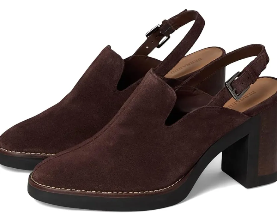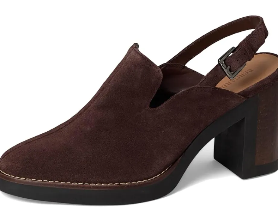 - The intersection of chic and comfortable styling Bernardo® Neza. Crafted with a luxe leather upper, lining, and insole, the sandal brings timeless polish to your day-to-day look. Its sharp silhouette nods to menswear-inspired tailoring, while the block heel adds just the right amount of lift, perfect for all-day wear. The slingback design with an adjustable buckle ensures a custom fit, and the slip-on style keeps things effortlessly chic. Finished with a durable rubber outsole, this versatile staple pairs beautifully with tailored trousers or your favorite denim.