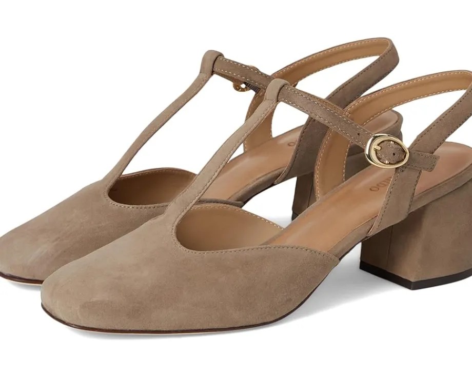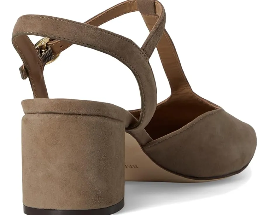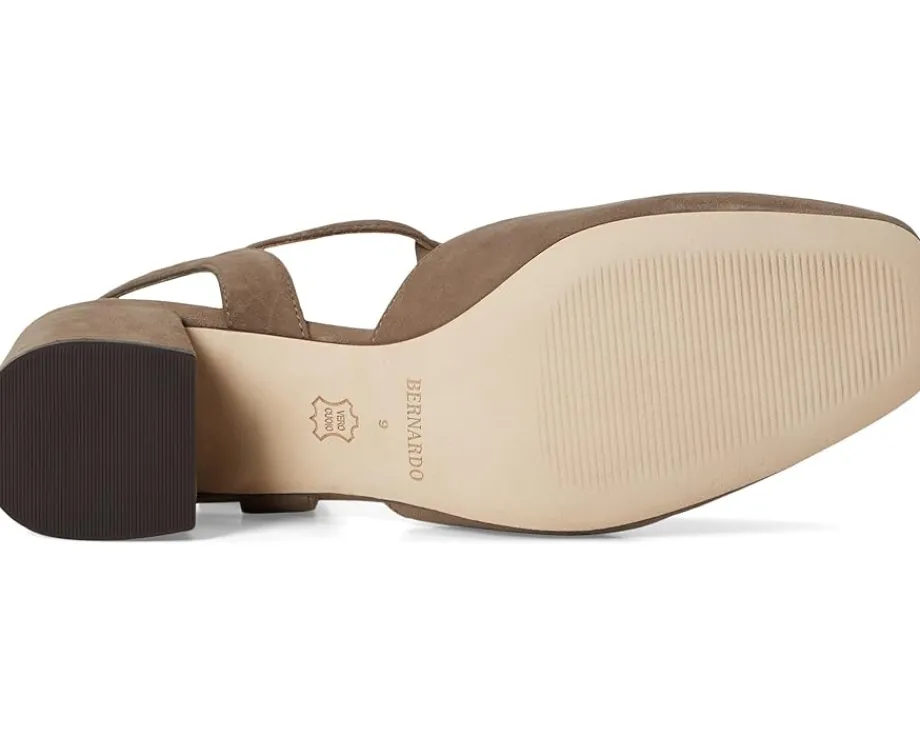 - The Bernardo® Romi is designed to elevate your everyday style with its classic T-strap silhouette and a secure buckle closure. This pump is crafted from supple leather and set on a block heel for stable, all-day wear. The square toe adds a modern edge, while the leather insole and outsole ensure a luxurious feel with every step.