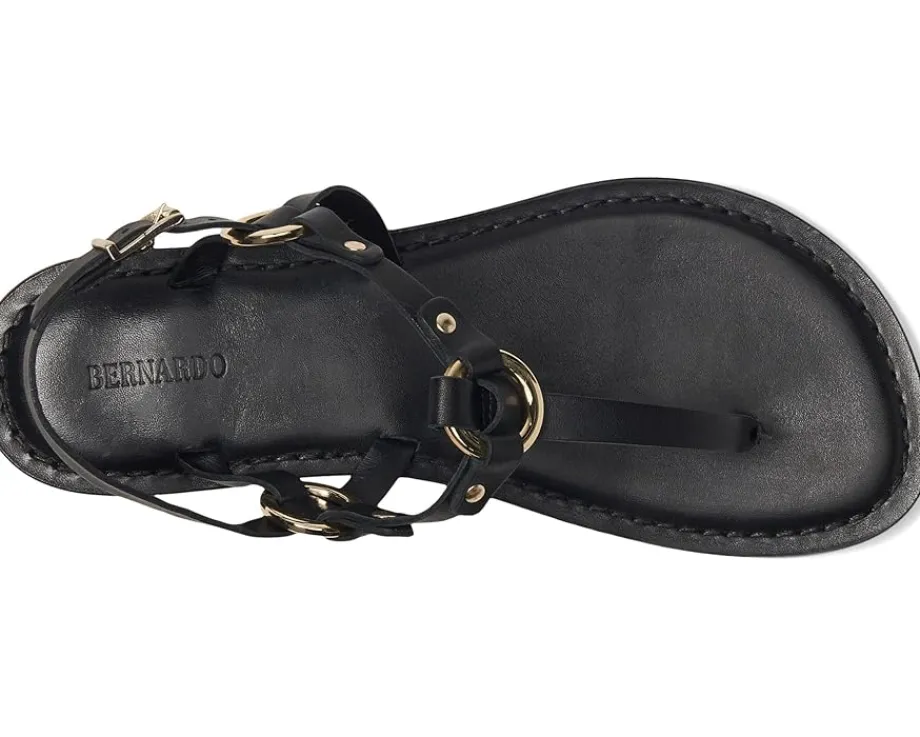 - Exhibit fashion-forward imagination with the Bernardo® Tuni T-strap sandal. Pairing modern leather upper straps with geometric hardware and a covered block heel, it proves that comfort and polish can coexist.