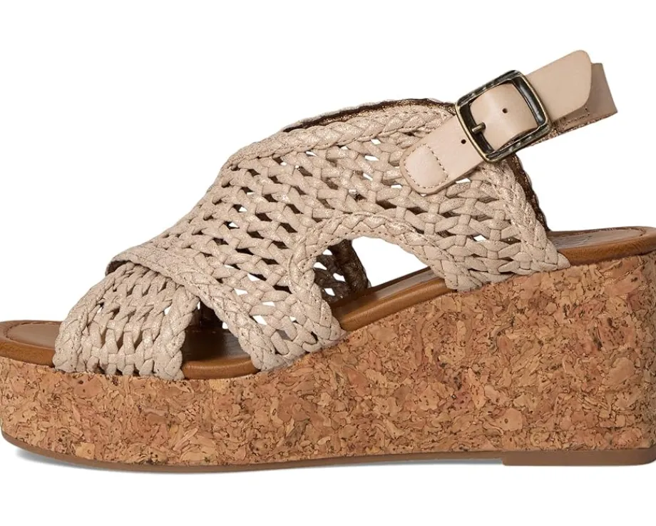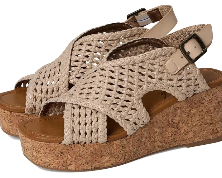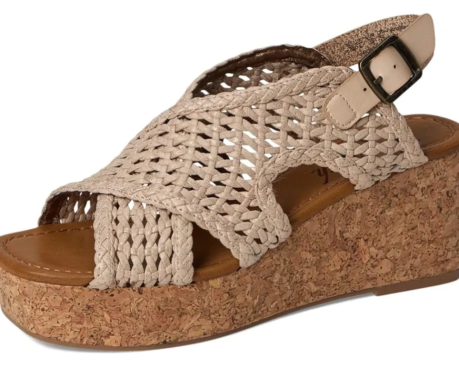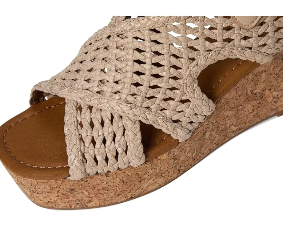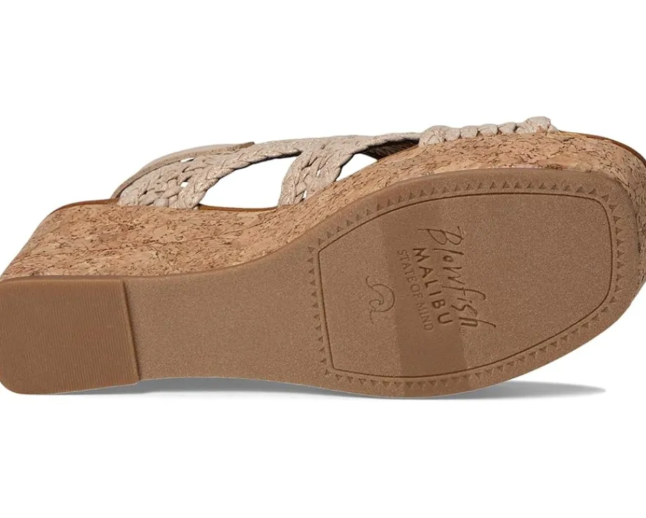 - These Blowfish® Malibu Andrea Wedge Sandals are the key to breezy island style – where boho aesthetic meets surefit comfort. Fashioned to take your resort wear to new heights, this wedge sports a stylish macramé-inspired faux-leather or fabric upper for an artisan quality. A sturdy buckle closure on the adjustable slingback ankle strap provides an on-point fit, and the square toe offers contemporary flair. The shoe is topped off with a rope-wrapped platform and wedge heel for the perfect height, while the plush foam insole and PU lining keep every step cushioned. Finished with a durable synthetic rubber outsole, this sandal is vegan and ready for sun-soaked adventures!