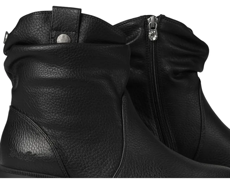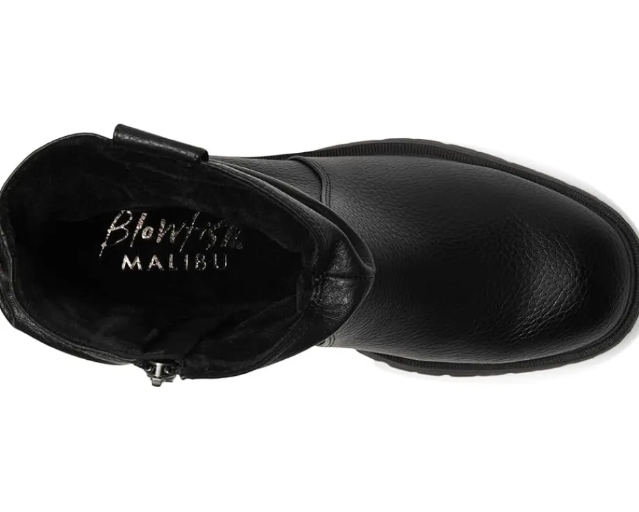- Step out in style wearing the Blowfish Malibu® Juniper Booties. Boasting a slouch mid-height shaft with Western-inspired details, these boots are a must-have for any fashion-forward individual. The PU upper and lining offer long-lasting wear, while the padded insole provides cushioned support. Complete with a round toe design, these shoes are as stylish as they are comfortable.
