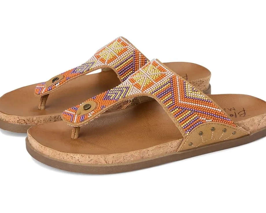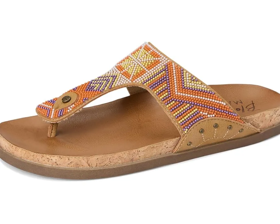 - Step up your chic style with the Blowfish® Malibu Lyric sandals. Featuring a faux leather thong upper adorned with intricate beading, they’re designed to turn heads. The open toe design ensures breathability, making them perfect for sunny days, while the flat sole offers comfort for all-day wear.