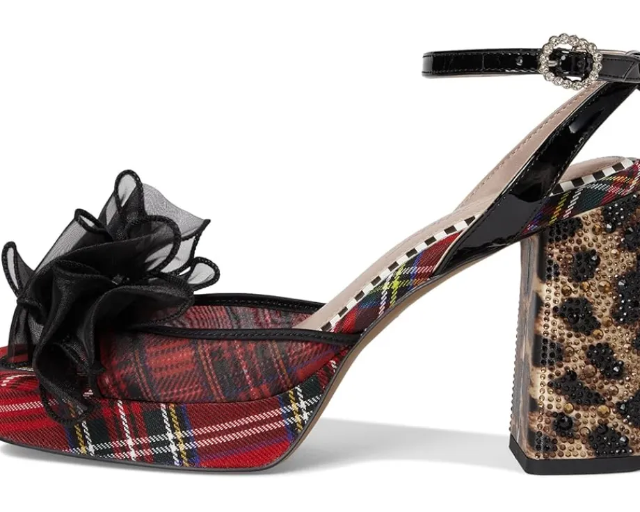 - The Blue™ by Betsey Johnson Palloma sandal features a large flower and crystal embellishments that bring an eye-catching flair. The squared open toe design, ankle strap with buckle closure, and sculpted block heel offer both elegance and support.
