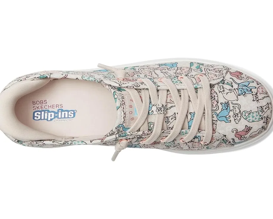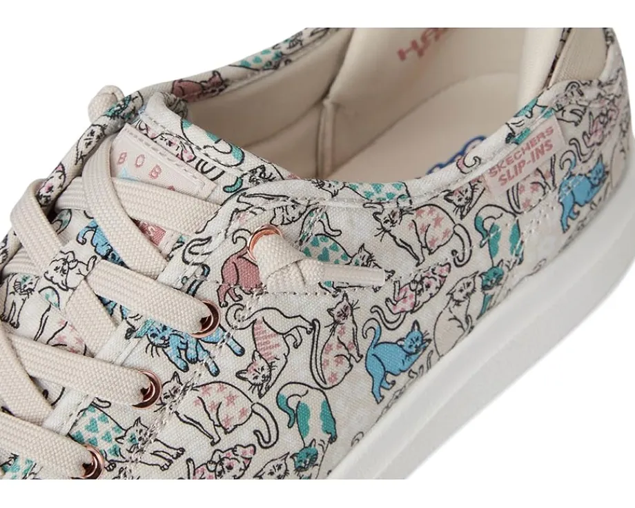 - Slip into blissful comfort and style choosing the BOBS from SKECHERS® Bobs D’Vine Hands Free Slip-ins. Crafted from canvas upper with allover ‘Pattern Kitty’ print and tied-off deco laces. The plush Skechers Memory Foam™ cushioned comfort insole and Exclusive Heel Pillow™ technology hold your foot securely and provide cloud-like comfort.