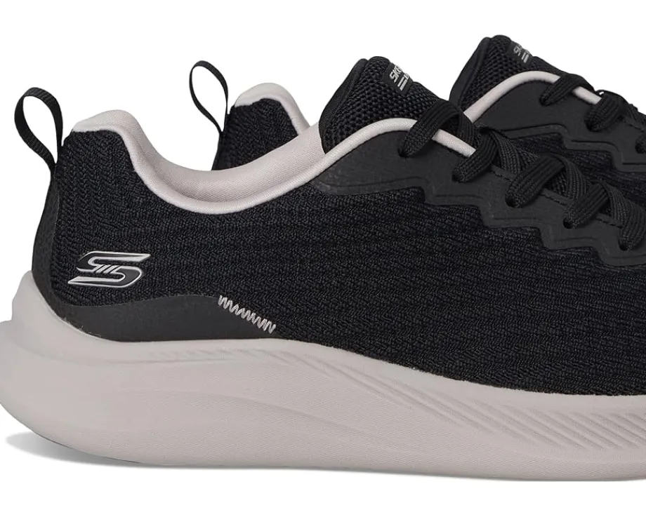 - Pair up with athletic style and comfort wearing the BOBS from SKECHERS® Bobs Moda Flex – Mellow Dawn shoes. These fashionable lace-up sneakers feature a textured fly knit mesh upper with a cushioned Skechers Memory Foam insole for all-day comfort. Made with 100% vegan materials, these low-top shoes are a must-have for your footwear collection.