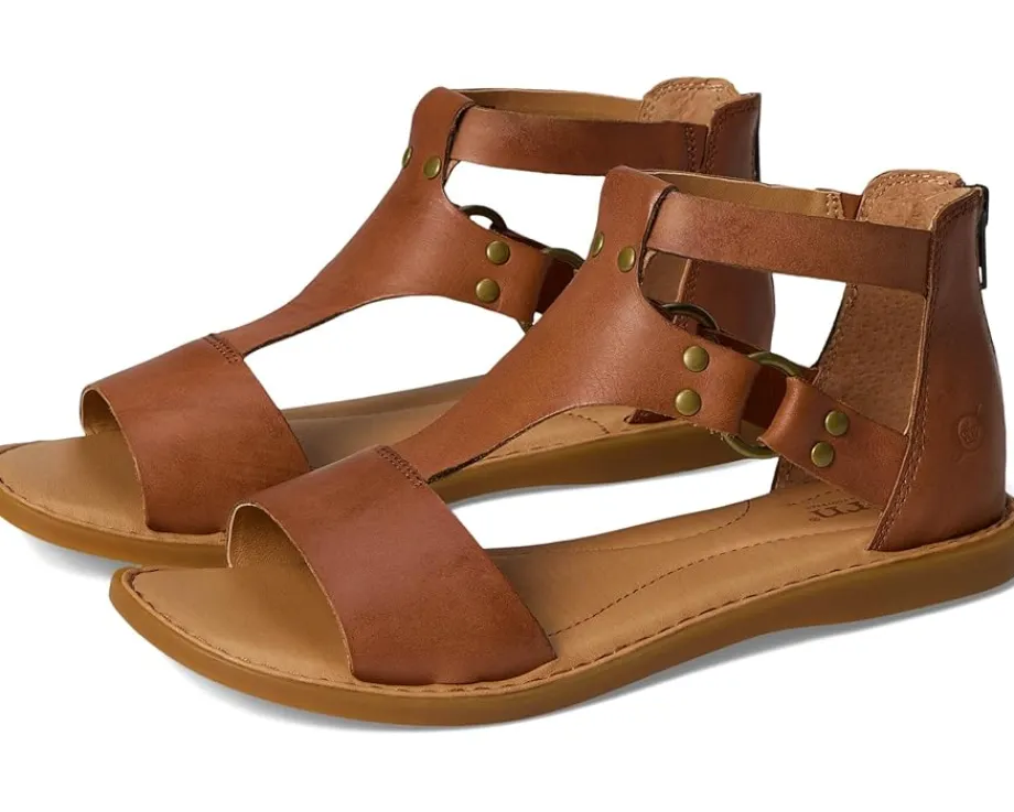- Experience the comfort of the Born® Indi sandals designed with soft leathers and even softer linings. The soft hand-finished full-grain leather upper features a zippered back closure for easy wear. These flat sandals are designed with a cushioned microfiber-covered foam with extra foam for added comfort and a breathable soft microsuede lining. The inside Opanka handcrafted construction offers added durability.