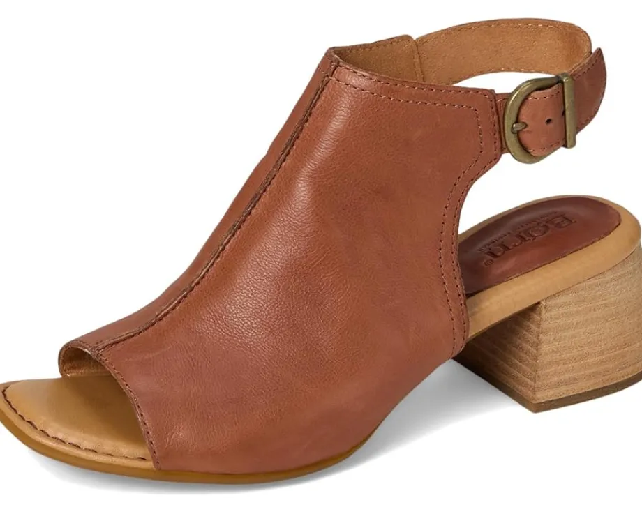 - Resort chic to city cool – this clever transitional silhouette fits any location. The Born® Sage sandals have the perfect coverage to bring you from place to place, season to season. These heeled sandals are made of a soft fabric-covered footbed with extra foam for added comfort and a breathable soft fabric suede lining. The hand-finished full-grain leather upper features an ankle strap with an adjustable buckle closure.