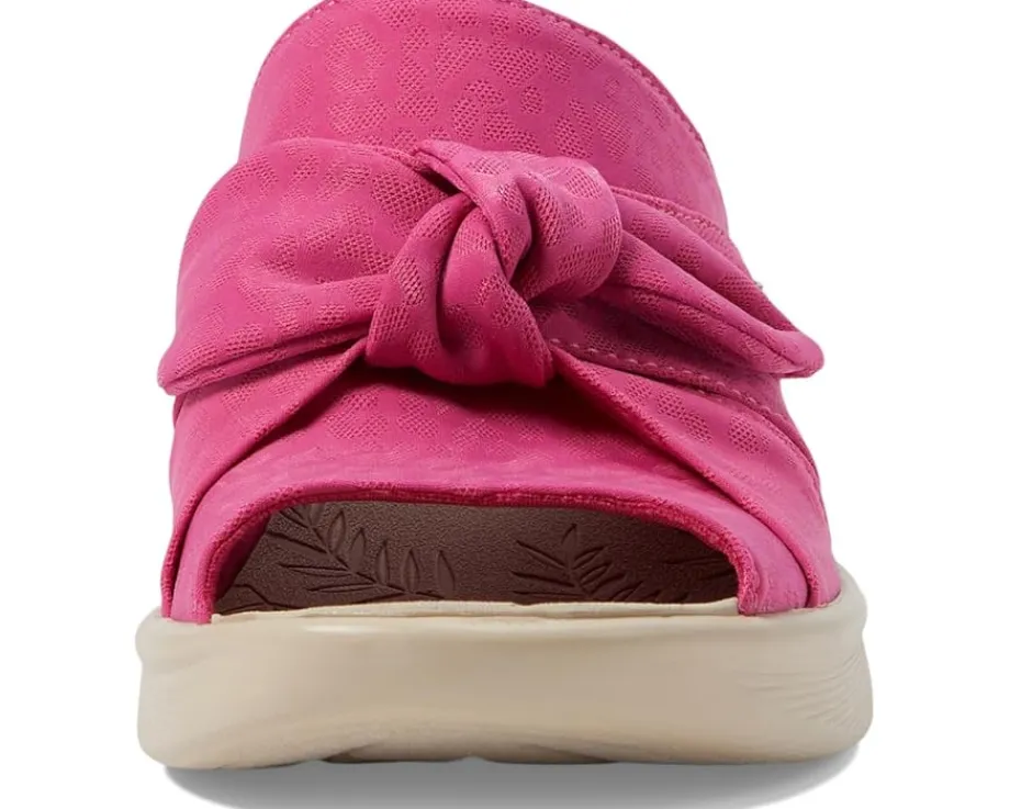 - Experience unparalleled comfort and style wearing the Bzees® Smile Slides. Featuring a knitted bow detail on the vamp, the slip-on footwear has dynamic stretch fabric upper construction for free and natural movement.
