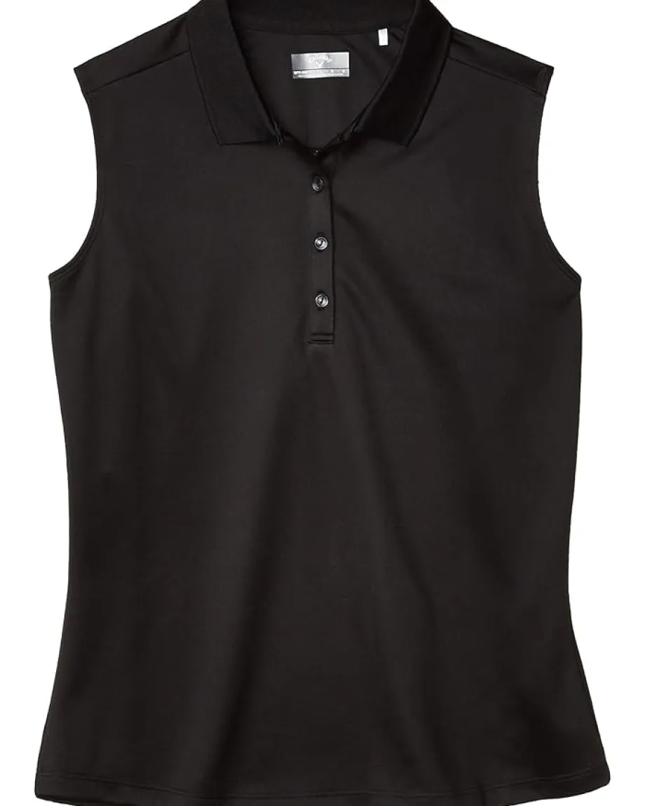 - Keep your cool when the golf course gets heated by sporting the athletic and modern fit Callaway® Golf Sleeveless Essential Solid Knit Polo.
