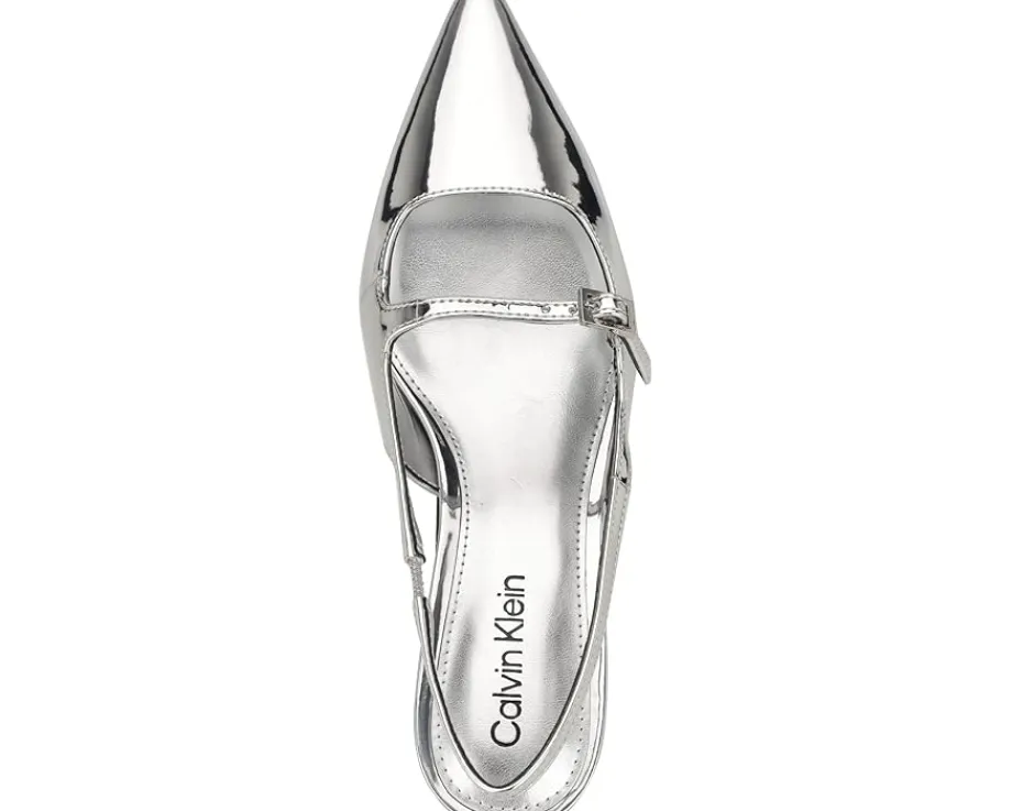 - A versatile choice, the Calvin Klein® Kallien dress pumps will turn heads. It features a slingback strap, stylish pointy toe, and tapered heel that will elevate any outfit. The pumps are crafted with a faux patent leather upper, man-made lining, and a comfortable insole.