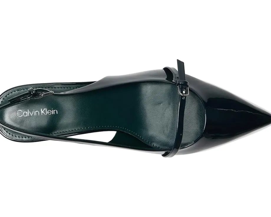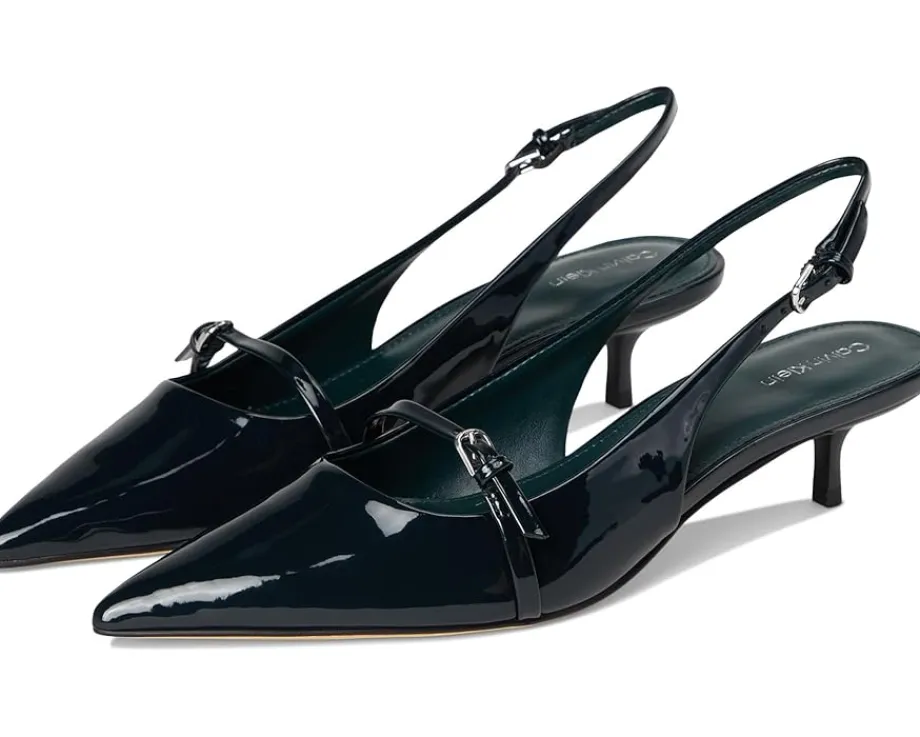 - Sleek sophistication meets modern glamor in the Calvin Klein® Simira. Designed for women who want polish with comfort, this dress pump blends timeless elegance with everyday wearability. Crafted with a smooth PU upper and a soft manmade lining, it ensures a luxe feel while staying lightweight. The adjustable slingback buckle strap provides a secure, personalized fit, while the pointed toe and chic kitten heel elevate your look with subtle confidence. A cushioned EVA outsole delivers all-day comfort without sacrificing style, making these heels perfect for workdays, nights out, or special occasions.