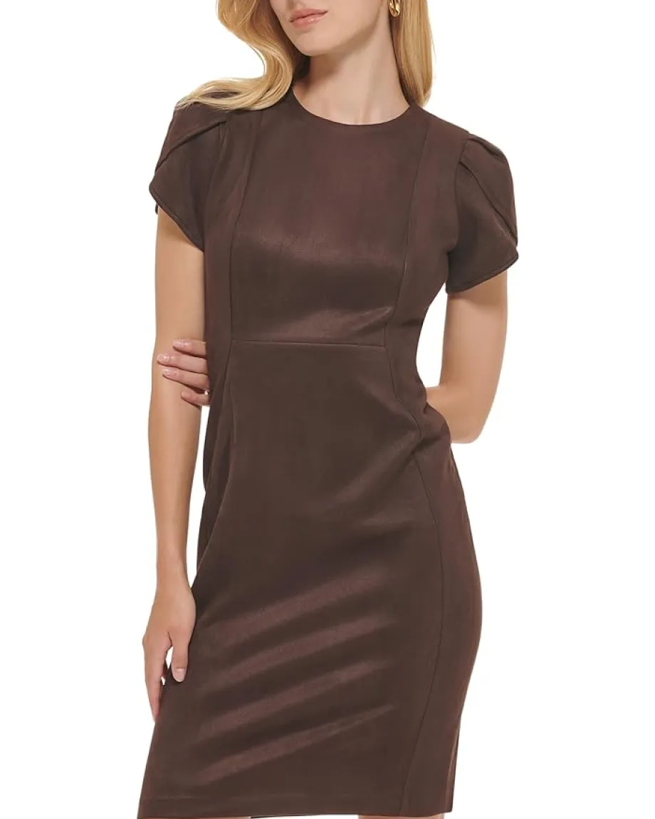 - Calvin Klein® Suede Tulip Sleeve Sheath dress.
