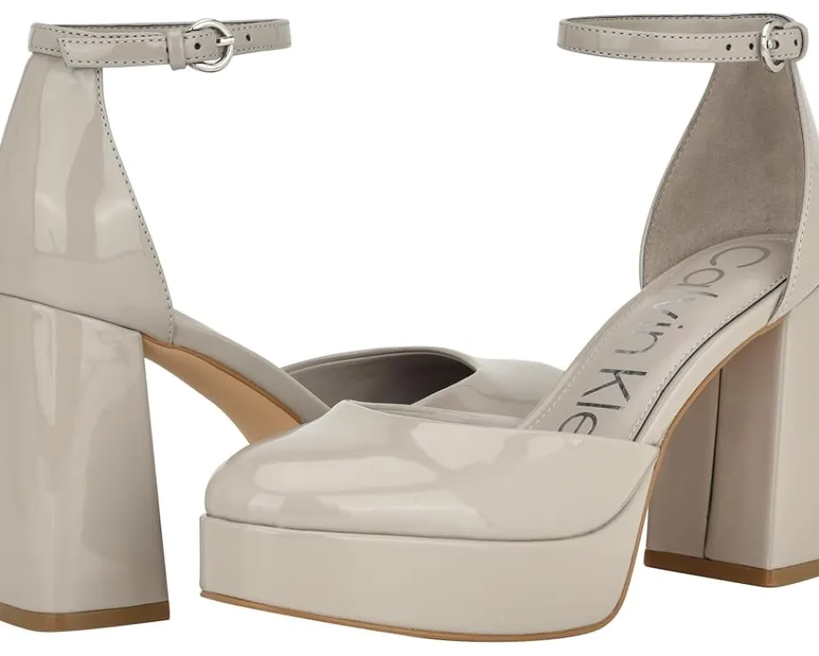- From desk to dinner, you will always carry an elegant look and enjoy flexible comfort when you wear the Calvin Klein® Sabin Heels. They visualize a timeless almond toe silhouette and are uplifted by a lofty block heel for added height. Grounded on a chunky platform and secured with an adjustable buckle strap closure on the ankle, the shoes can complement any outfit and offer a flexible fit.