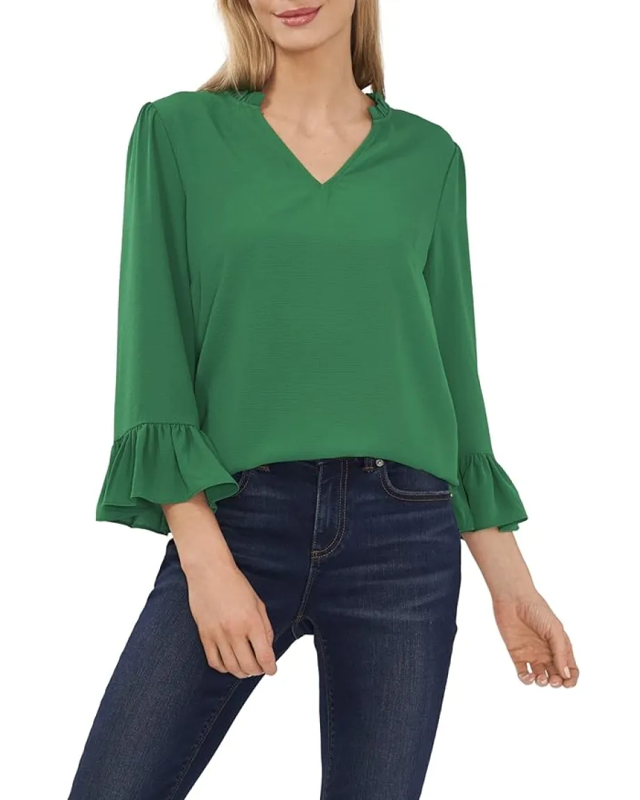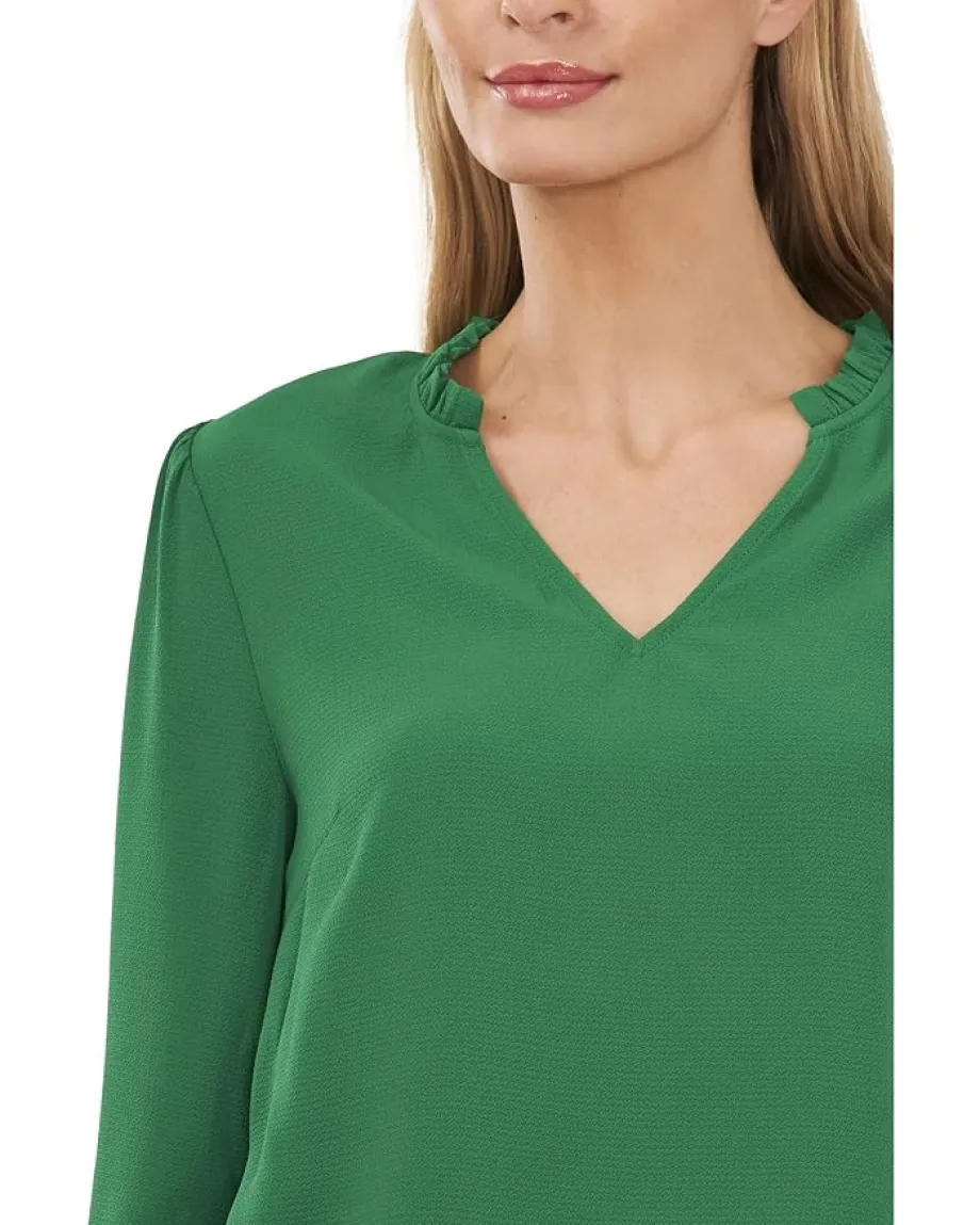 - Defined by sophistication and femininity, the CeCe™ 3/4 Ruffled V-Neck Top will make for a versatile addition to your wardrobe.