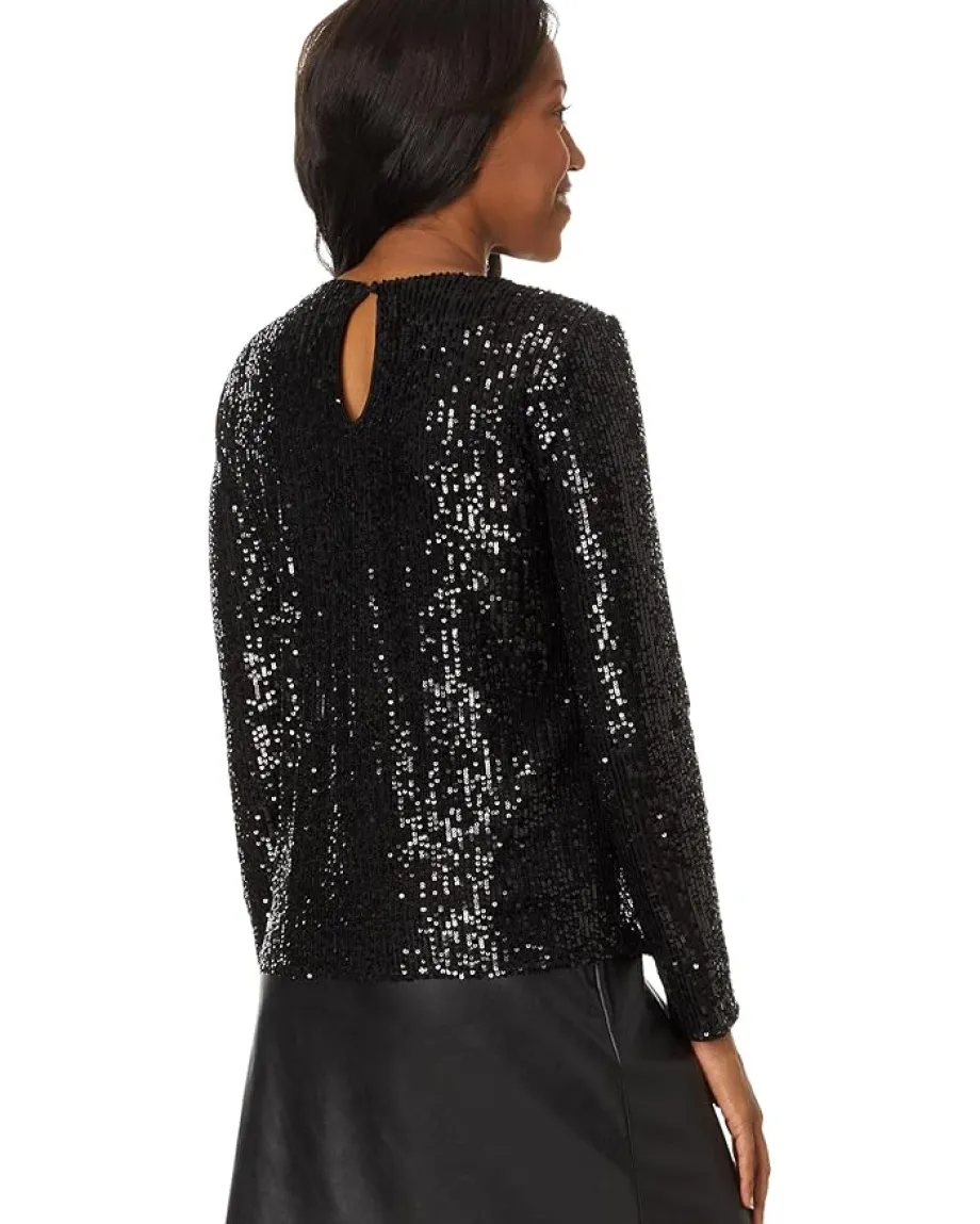 - Sparkle and shine wherever you go! The CeCe™ Long Sleeve Sequin Crew Neck top is your new go-to for effortless elegance. Adorned with shimmering sequins from neckline to hem, this classic fit piece catches the light with every movement, ensuring you stand out in any crowd. The timeless crew neck and long sleeves create a flattering silhouette, perfect for dressing up or down. With a keyhole button closure at the back and a convenient pull-on design, this top combines style with ease.