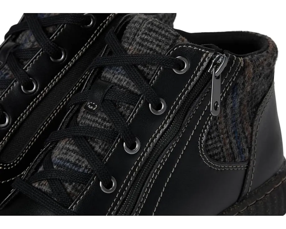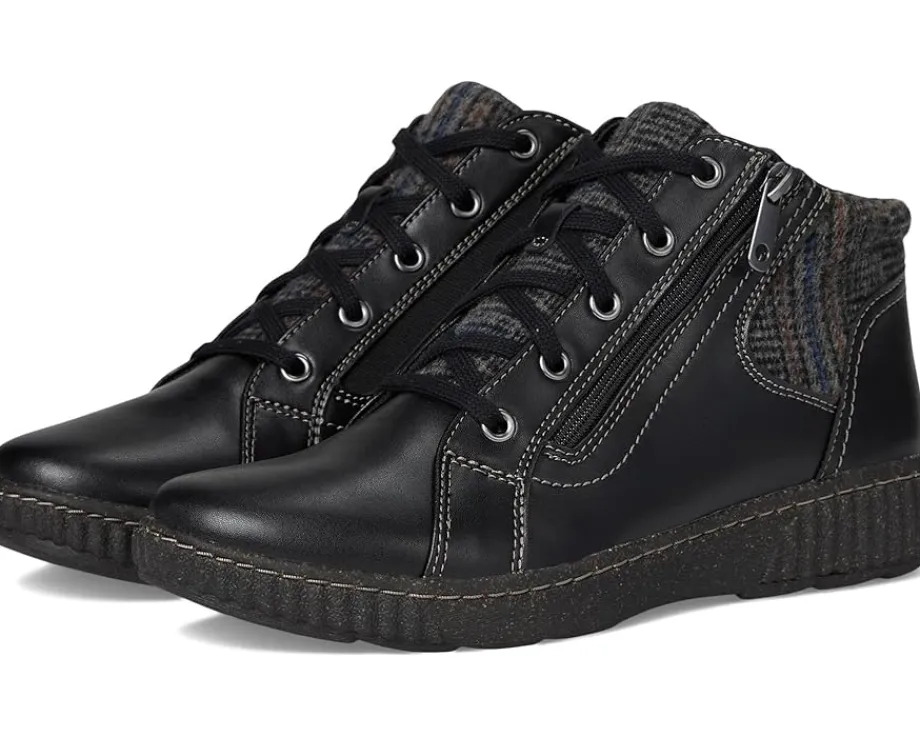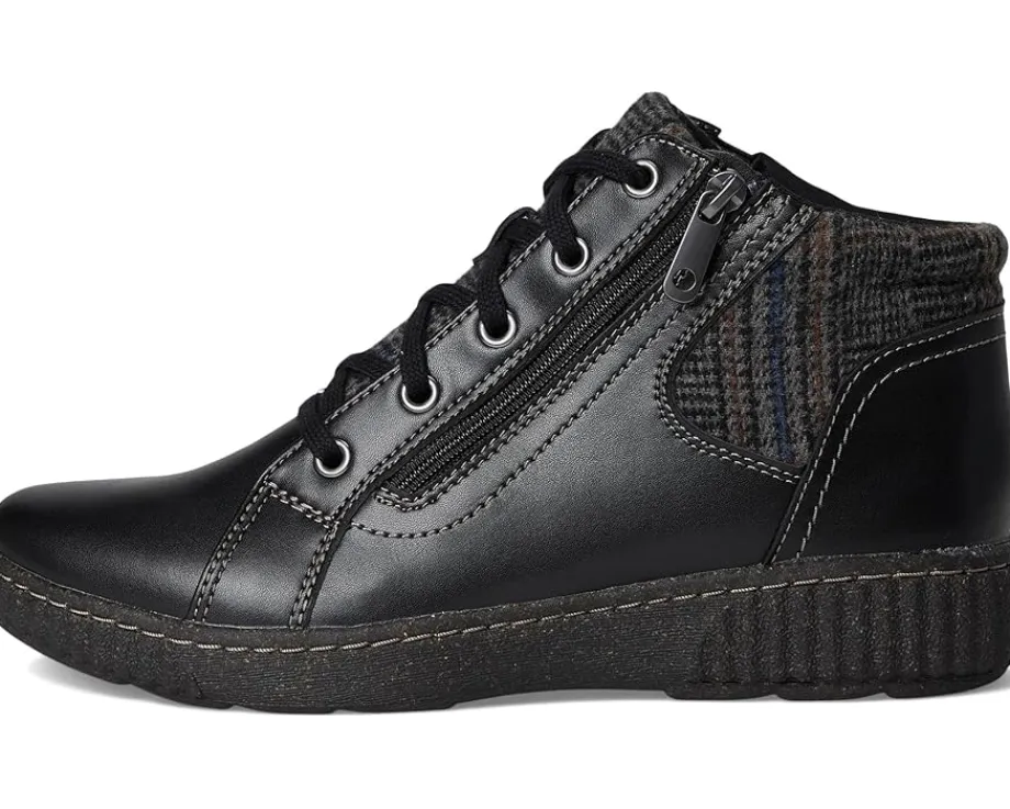 - Smooth premium leather meets cozy winter-ready textiles to create Clarks™ Caroline Spice, the ankle boot you’ll pair with all your casual looks this season. Calling on a lace fastening and a handy side zip, it offers easy foot entry and an adjustable fit, while a dependable, slip-resistant sole lends unbeatable traction and flex.