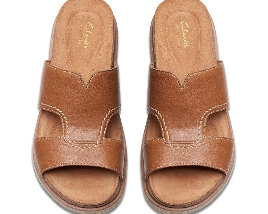 - Celebrate outdoor fun in style wearing the Clarks® Arwell Walk Sandals. The slip-on footwear features leather upper construction with polyester lining and open almond toe silhouette.