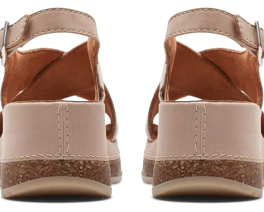 - Move out to explore the world wearing Clarks™ Kassanda Step sandals. An open toe with crossing-over wide strappy vamp and adjustable ankle strap with buckle closure ensures a supportive fit to the feet. It has leather upper, polyester lining, and rubber insole.