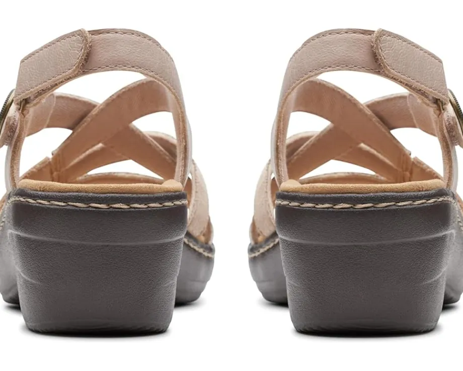 - Step into elegance and comfort with Clarks™ Merliah Bonita. These wedges boast a captivating strappy design, embracing your feet with finesse. With a secure hook & loop closure and a durable rubber insole, they offer both style and support. Elevate every step with their chic round toe silhouette.
