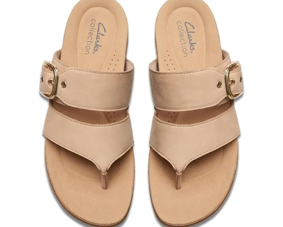 - Walk on the streets with comfort and fashionable look donning the Clarks™ Reileigh Park. These flat thong-style sandals feature open round toe design, brand detailing on the footbed, and leather upper.