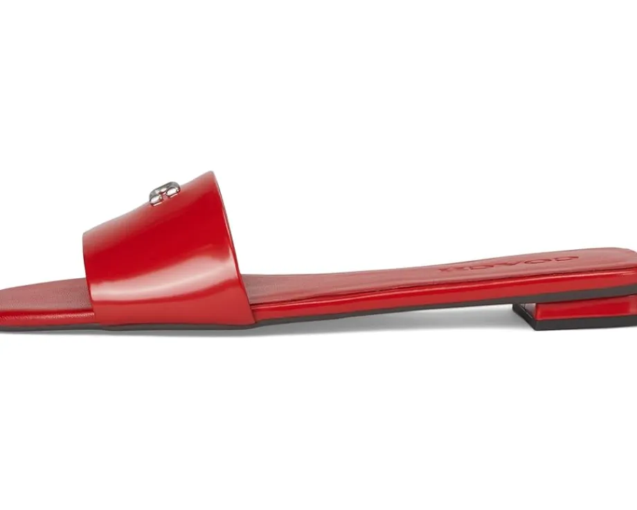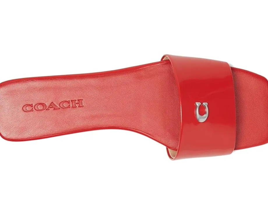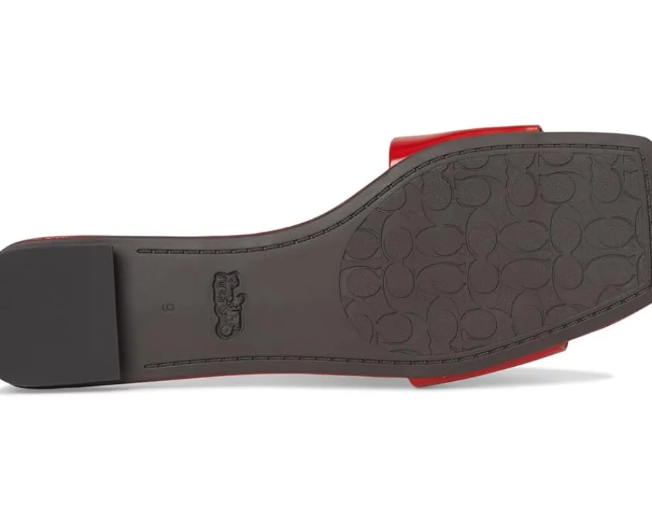 - Slide in, step out, and feel the freedom wearing the COACH® Sculpted C Sandals. Crafted from leather upper, man-made leather lining, and rubber insole, this pair of slip-on’s features open square toe, wide strap detailing with brand hardware logo, low-top silhouette, low stacked heel, and brand detailing on the footbed.